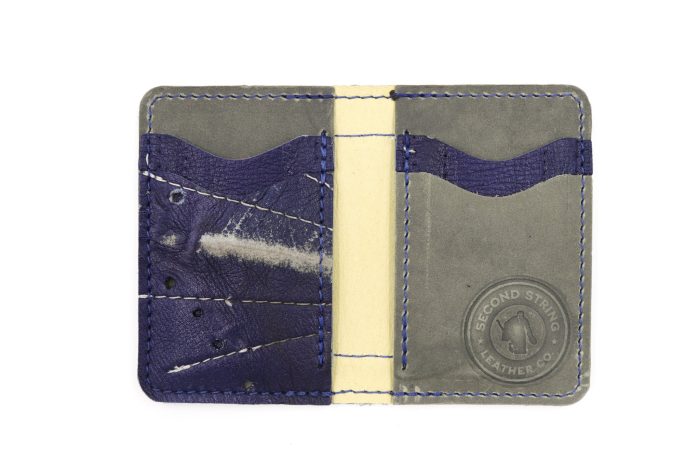 The 6 Slot Wallet is handcrafted from full-grain, oil-tanned leather and fused with vintage goalie gear leather. It features six card slots, two of wh