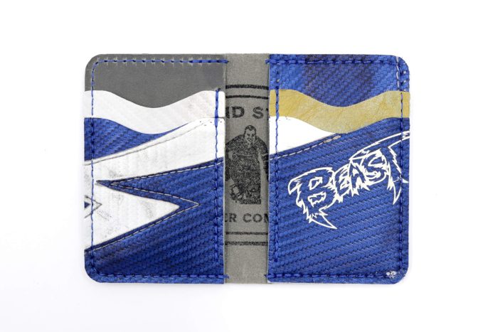 The 6 Slot Wallet is handcrafted from full-grain, oil-tanned leather and fused with vintage goalie gear leather. It features six card slots, two of wh