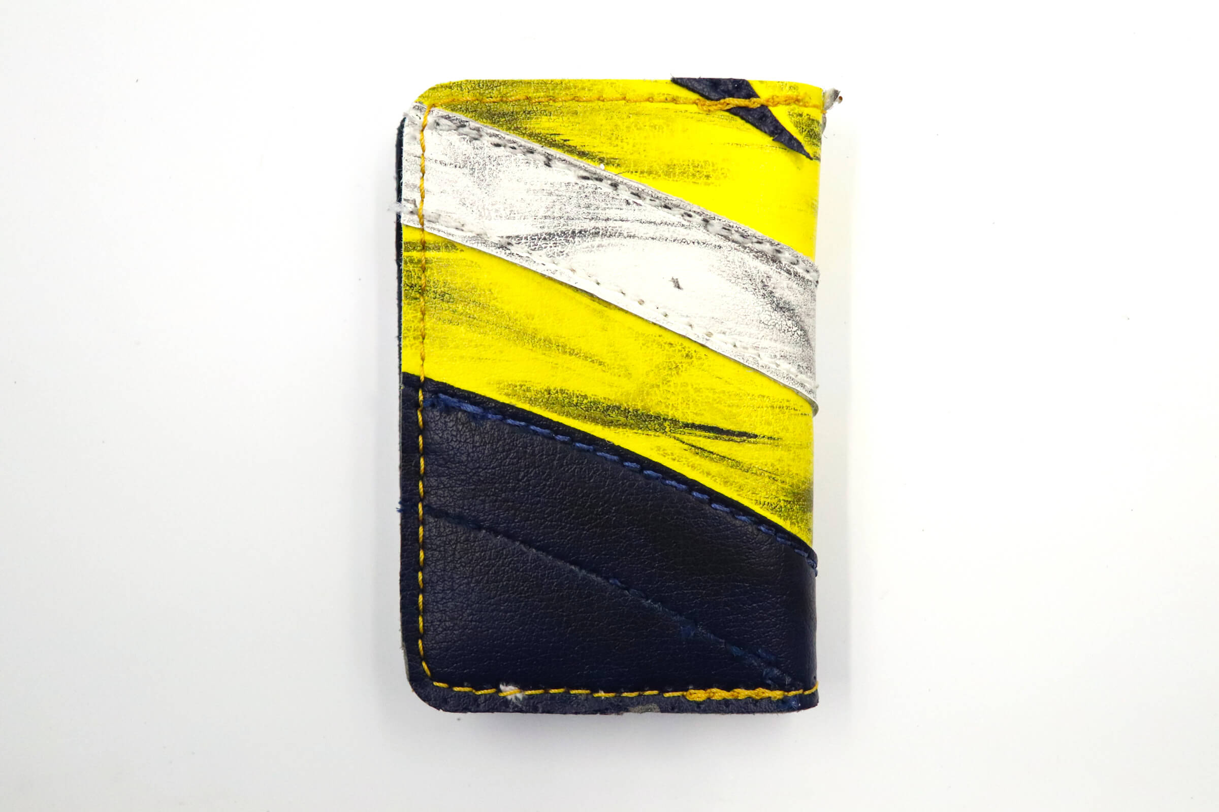 The 6 Slot Wallet is handcrafted from full-grain, oil-tanned leather and fused with vintage goalie gear leather. It features six card slots, two of wh