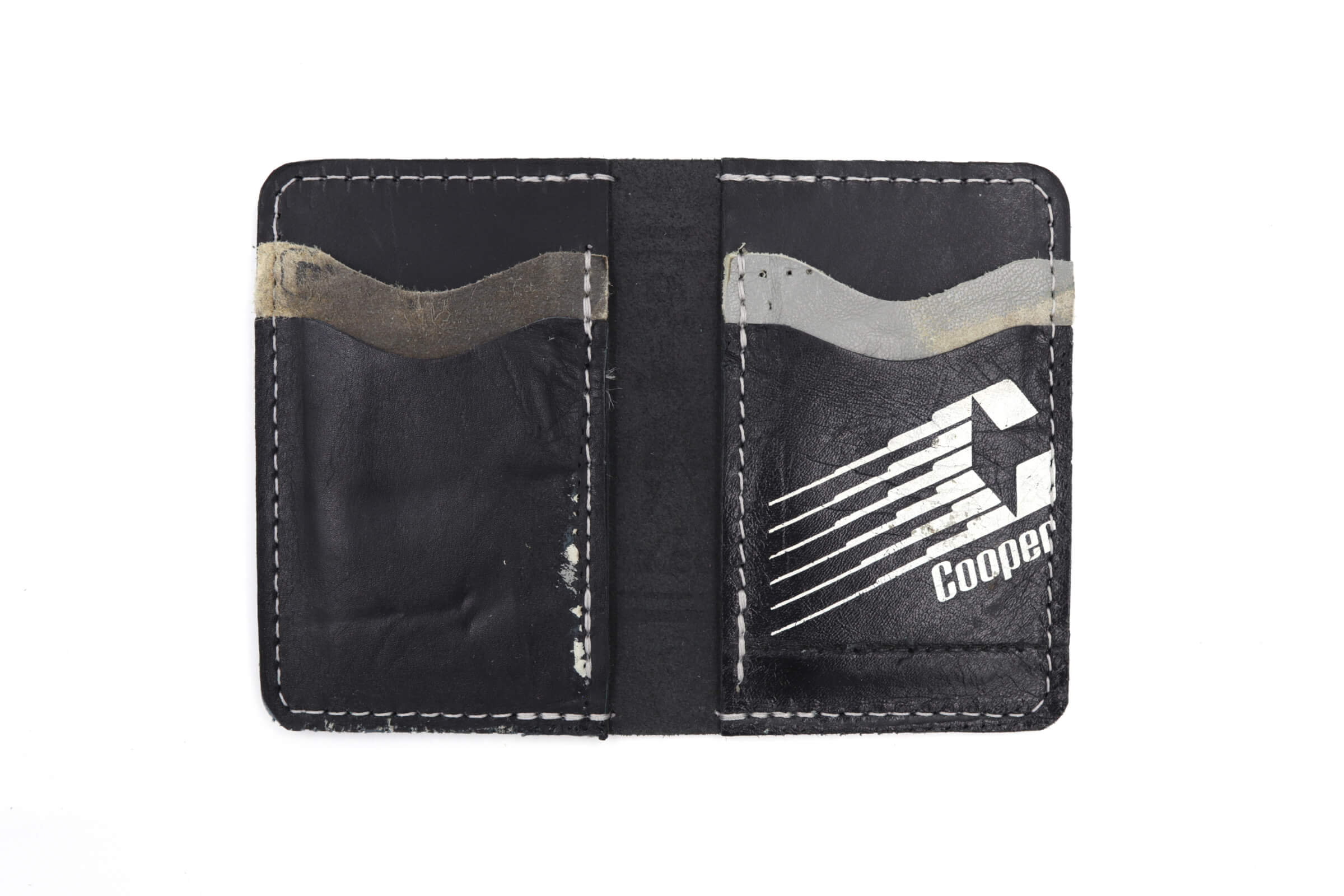 The 6 Slot Wallet is handcrafted from full-grain, oil-tanned leather and fused with vintage player gear leather. It features six card slots, two of wh