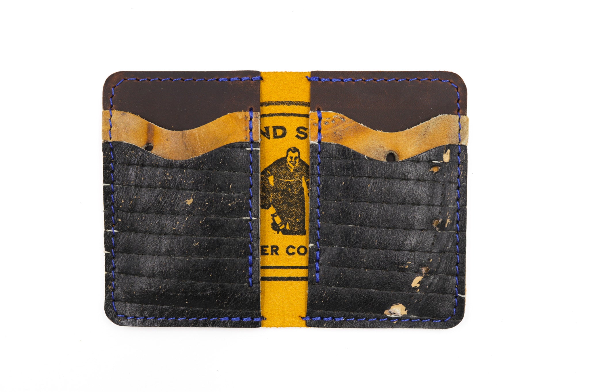 The 6 Slot Wallet is handcrafted from full-grain, oil-tanned leather and fused with vintage goalie gear leather. It features six card slots, two of wh