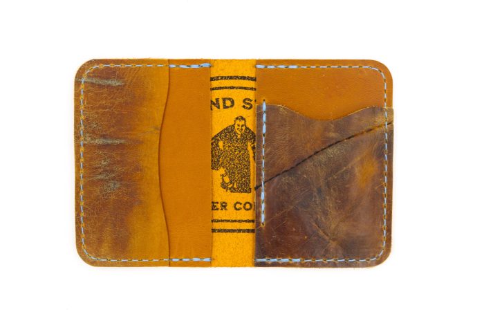 Forged from full-grain, oil-tanned leather and vintage goalie gear leather comes The 4 Slot Wallet. This sleek wallet features three vertical card slo