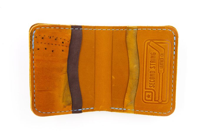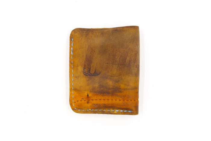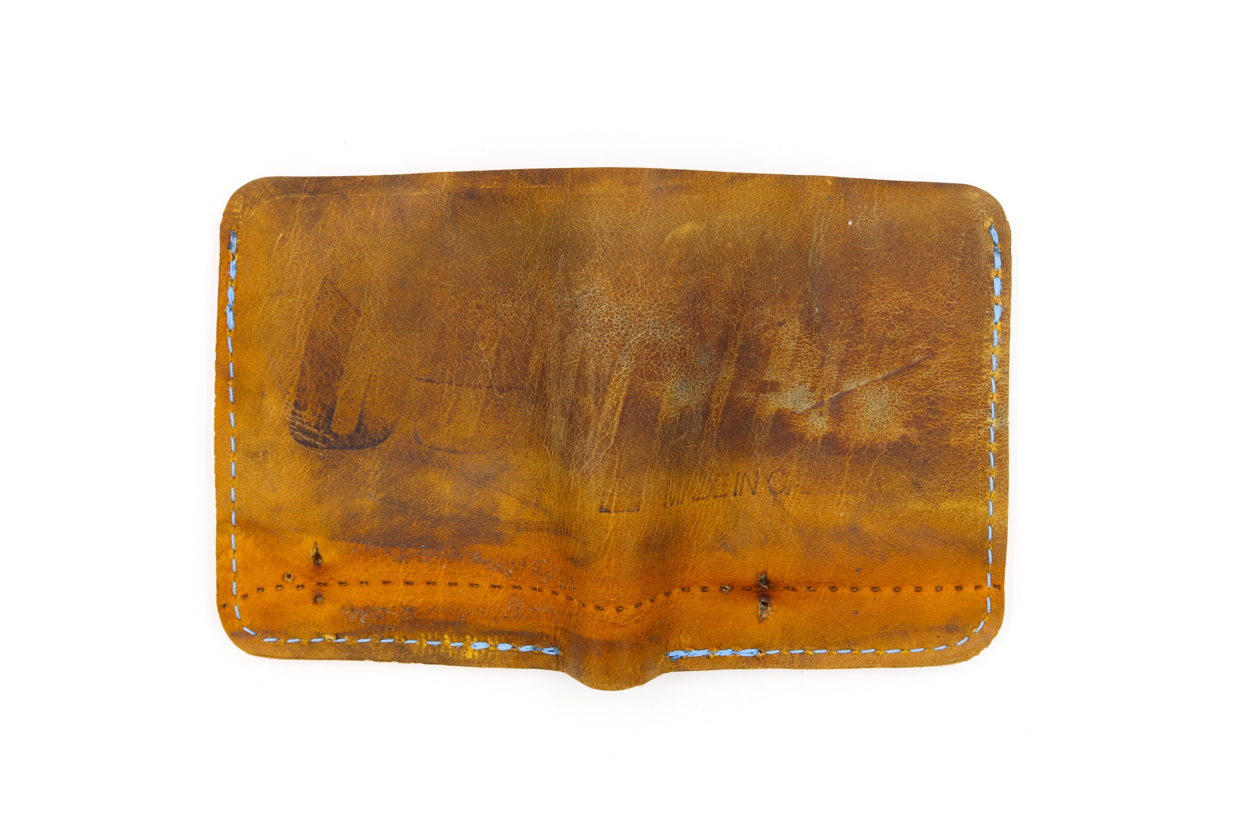 The 6 Slot Square Wallet is handcrafted from full-grain, oil-tanned leather and blended with vintage goalie gear leather. It features six card slots a