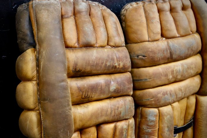 The 6 Slot Square Wallet is handcrafted from full-grain, oil-tanned leather and blended with vintage goalie gear leather. It features six card slots and a top bill fold compartment for easy bill storage. Carry on the heritage of the games passed with this sleek and functional leather wallet.