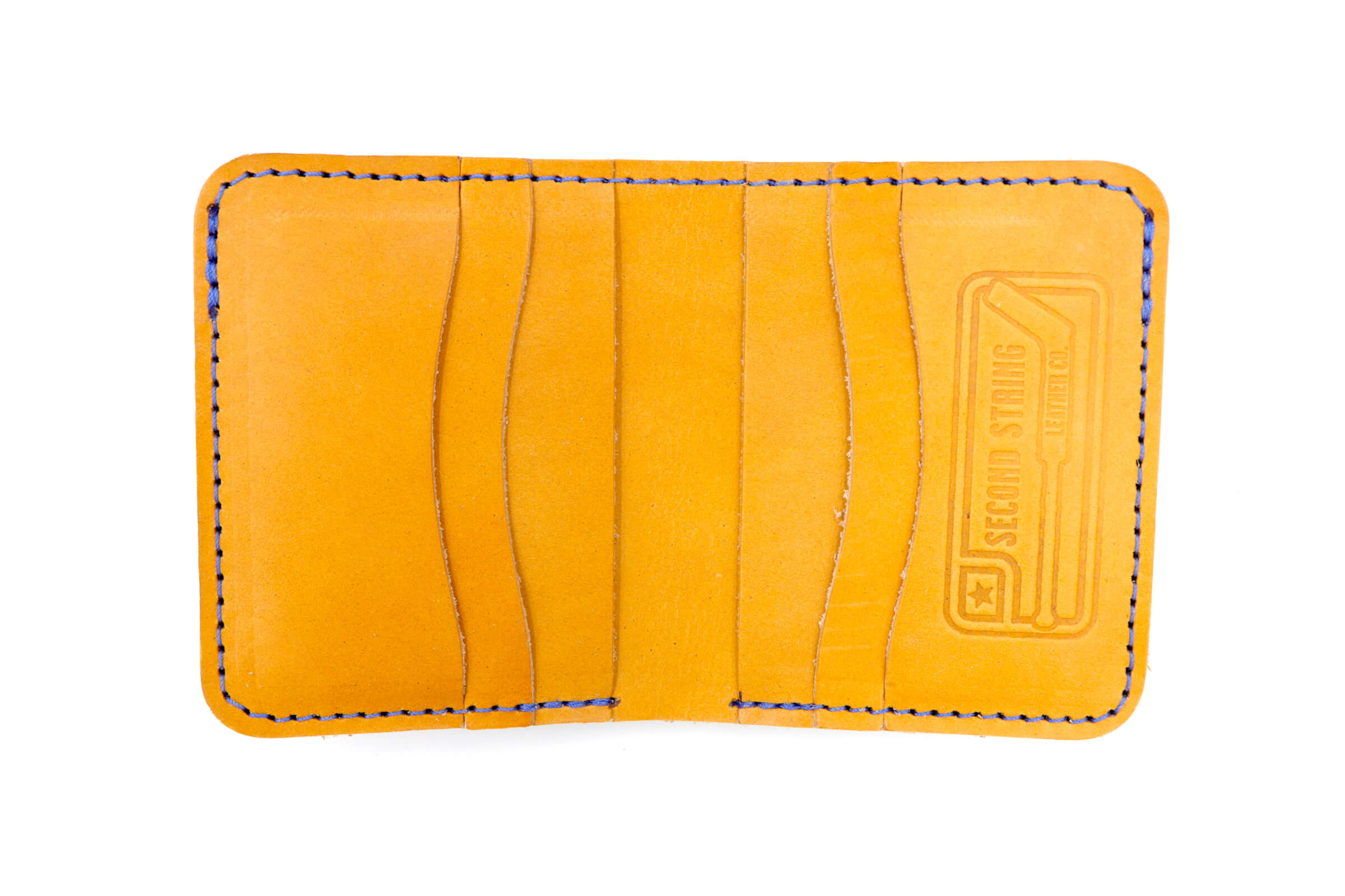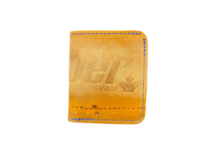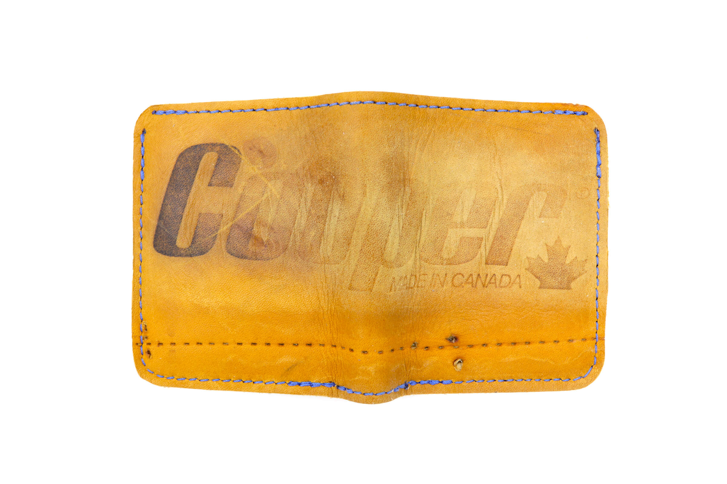The 6 Slot Square Wallet is handcrafted from full-grain, oil-tanned leather and blended with vintage goalie gear leather. It features six card slots and a top bill fold compartment for easy bill storage. Carry on the heritage of the games passed with this sleek and functional leather wallet.