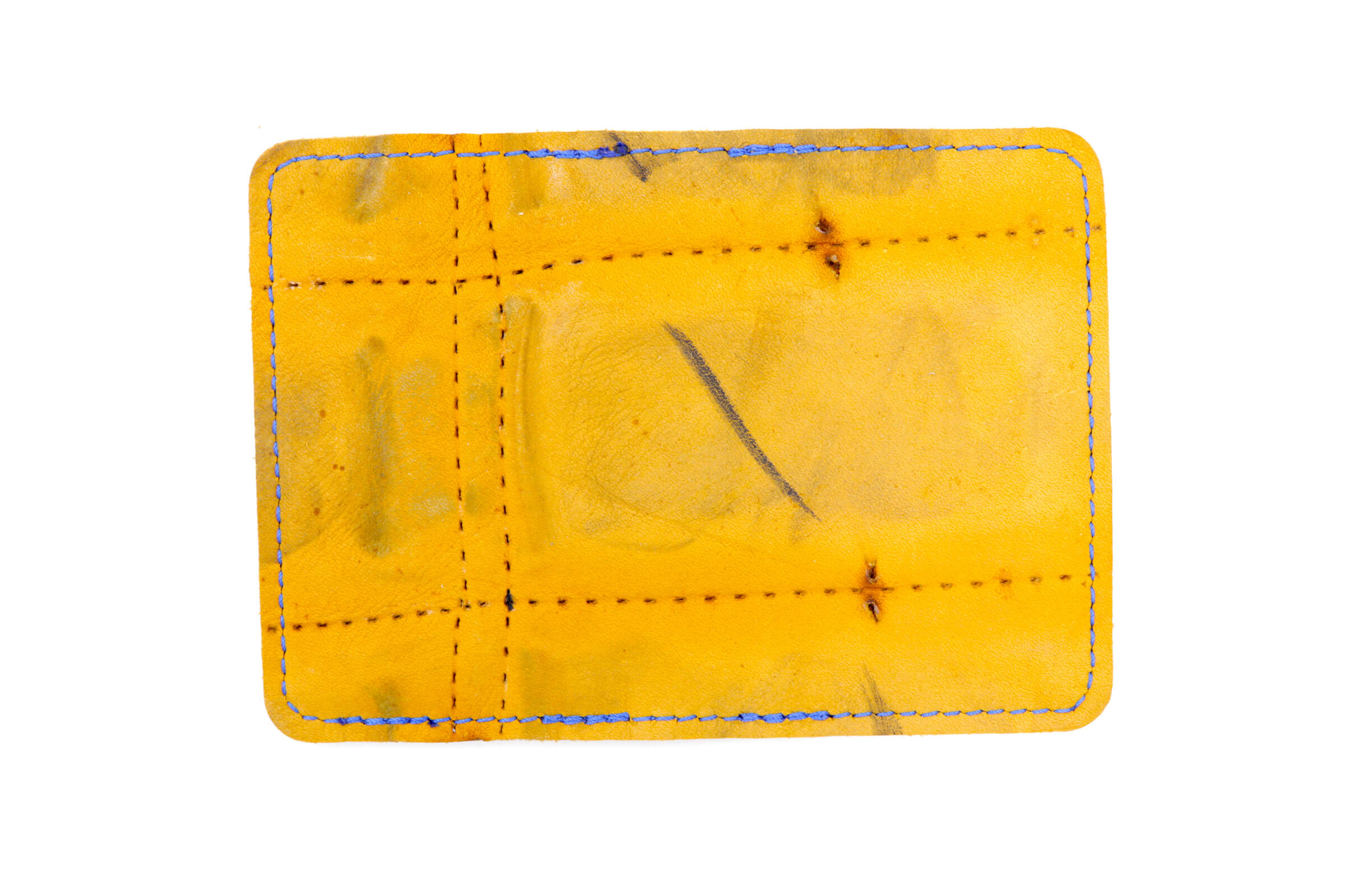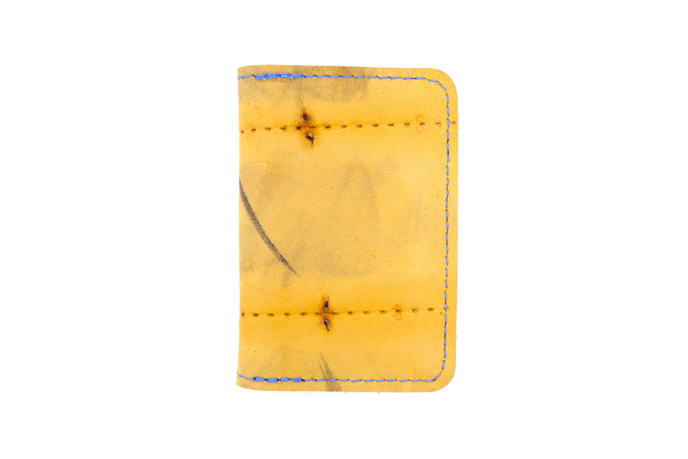 The 6 Slot Wallet is handcrafted from full-grain, oil-tanned leather and fused with vintage goalie gear leather. It features six card slots, two of wh