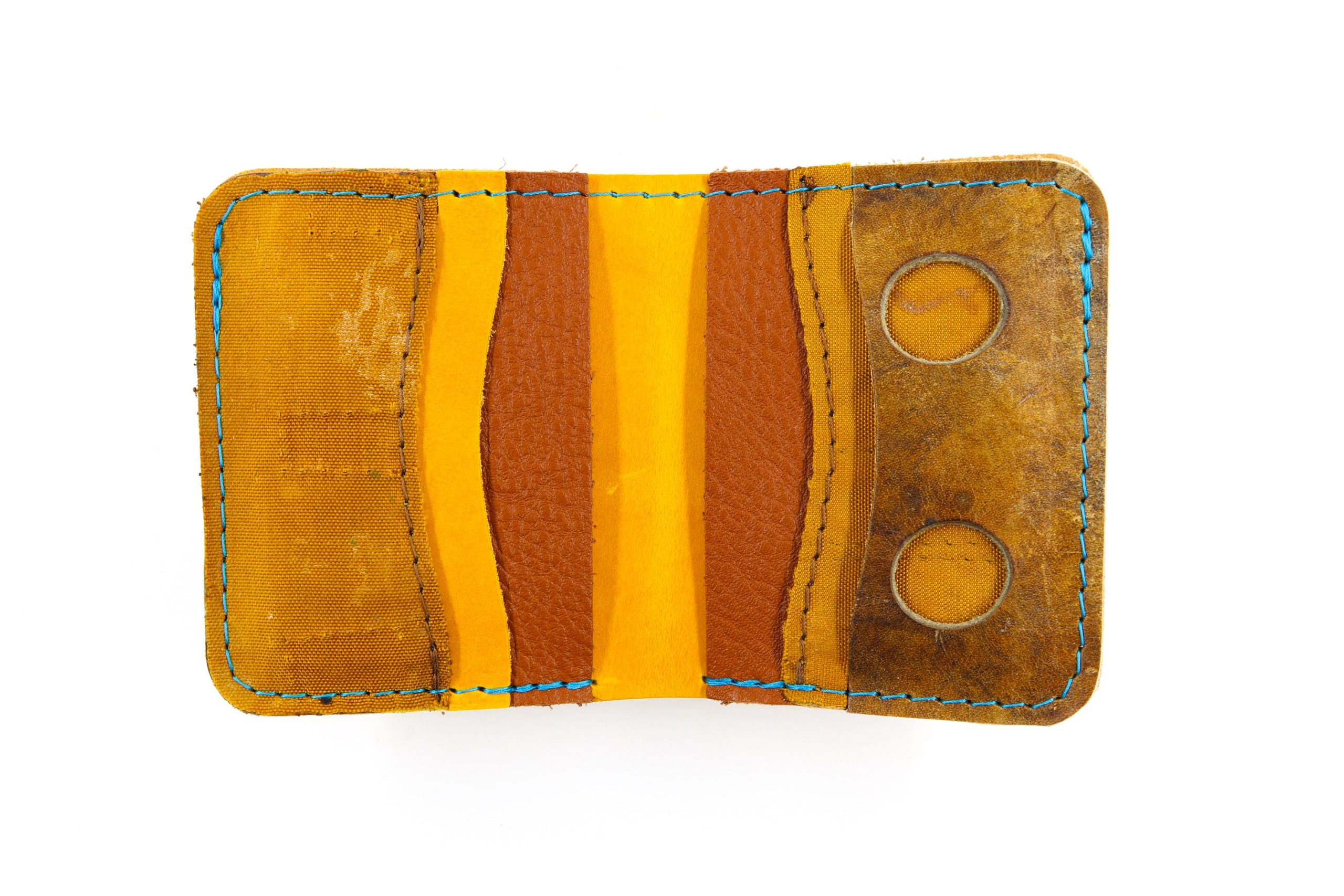 The 6 Slot Square Wallet is handcrafted from full-grain, oil-tanned leather and blended with vintage goalie gear leather. It features six card slots a