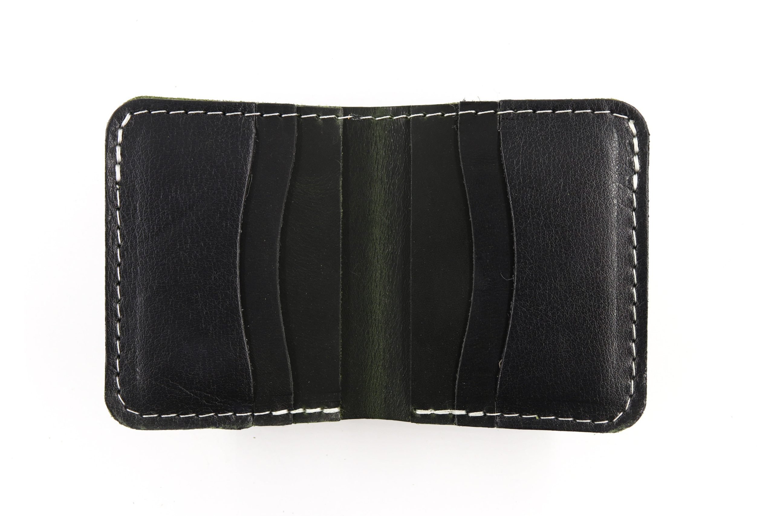 The 6 Slot Square Wallet is handcrafted from full-grain, oil-tanned leather and blended with vintage goalie gear leather. It features six card slots a