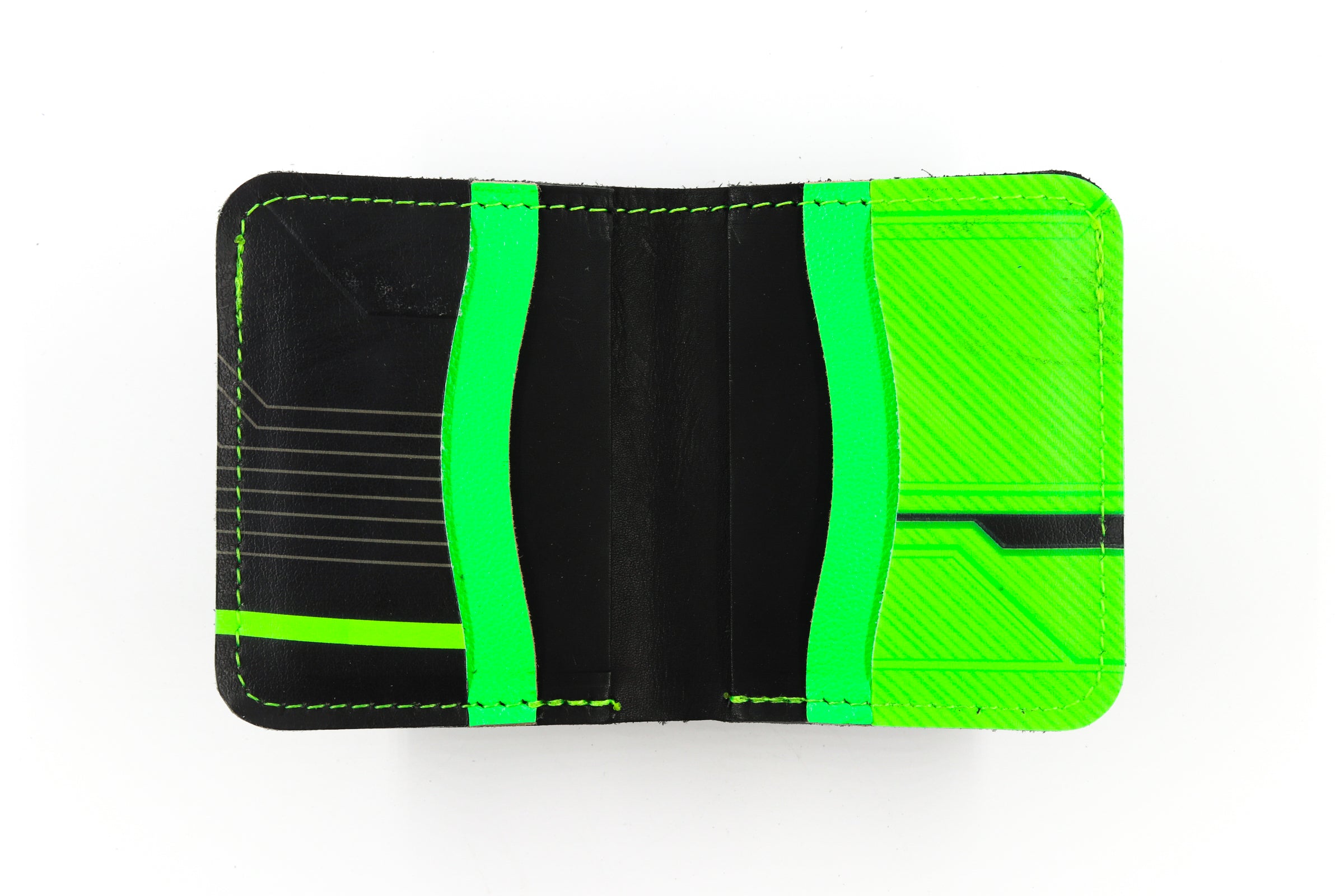 The 6 Slot Square Wallet is handcrafted from full-grain, oil-tanned leather and blended with vintage goalie gear leather. It features six card slots and a top bill fold compartment for easy bill storage. Carry on the heritage of the games passed with this sleek and functional leather wallet.