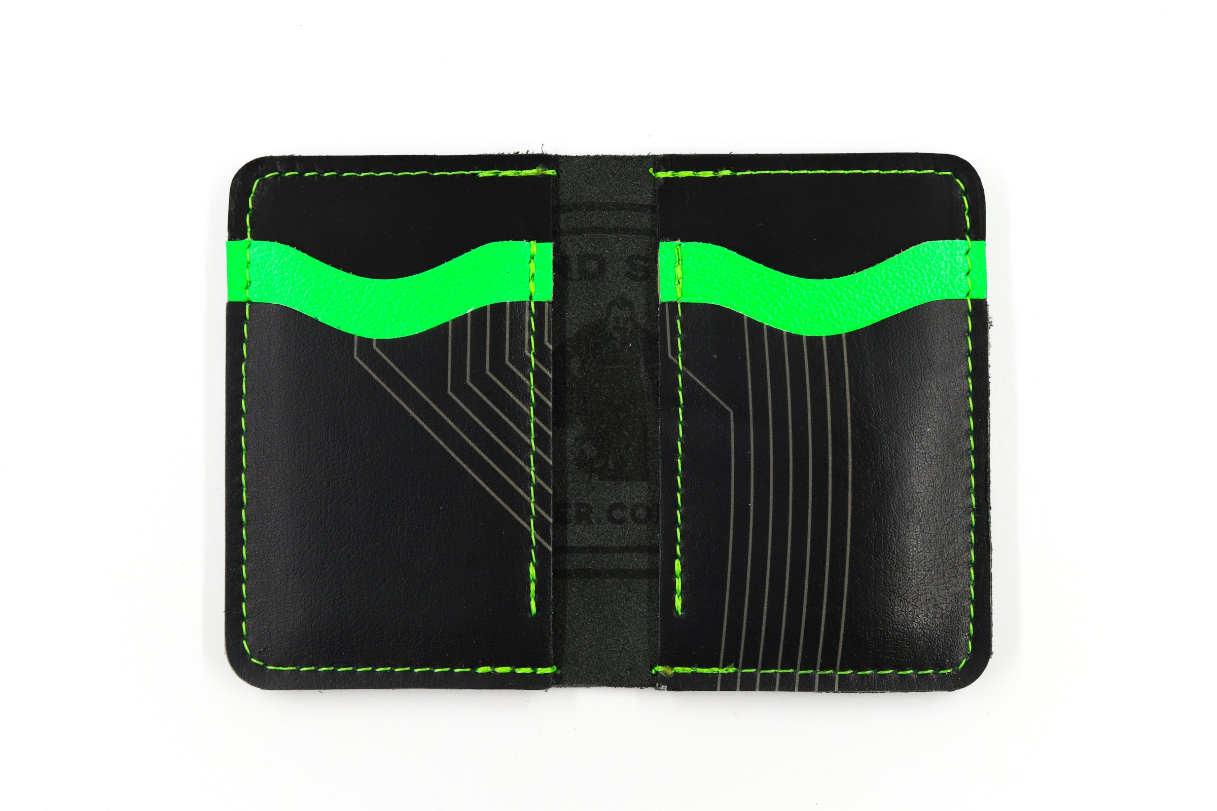 The 6 Slot Wallet is handcrafted from full-grain, oil-tanned leather and fused with vintage goalie gear leather. It features six card slots, two of wh