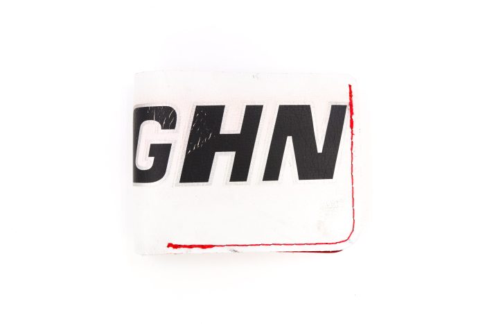 The 6 Slot Bifold Wallet is handcrafted from full-grain, oil-tanned leather and blended with vintage goalie glove leather on the lower left and right