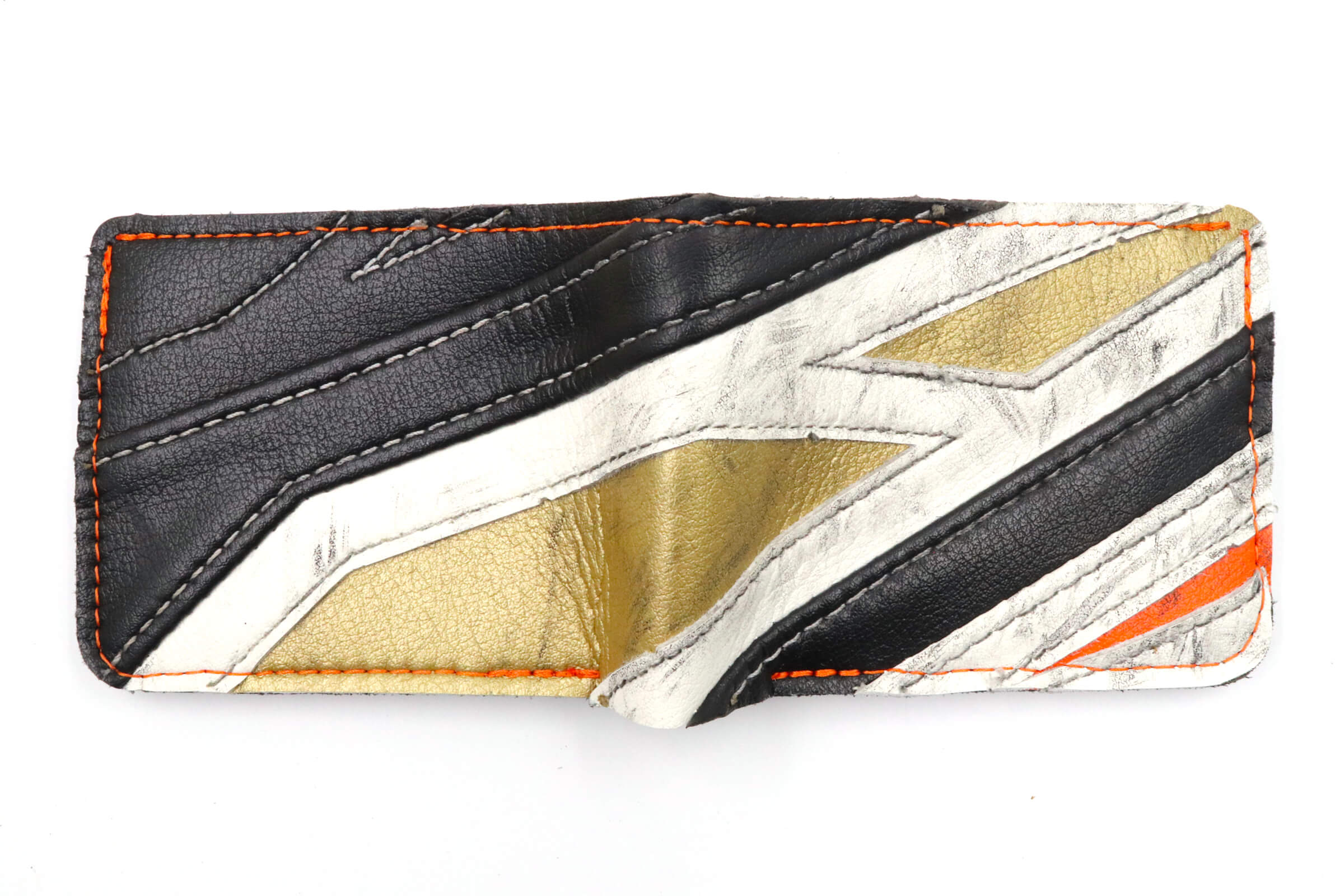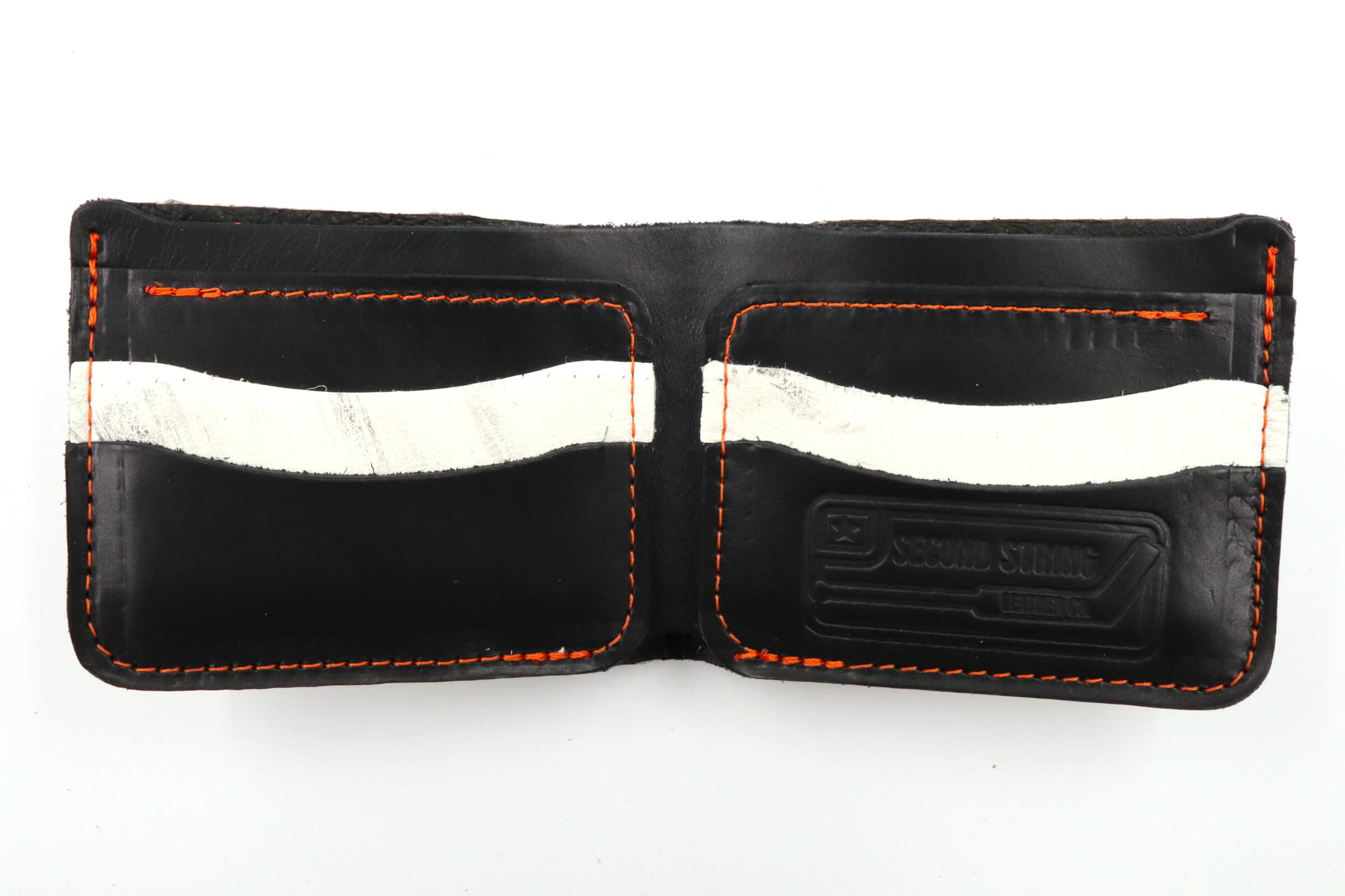 The 6 Slot Bifold Wallet is handcrafted from Horween Leather and blended with vintage goalie glove leather on the lower left and right card pockets. The Bifold features 6 card slots and a bill compartment providing enough space to hold all of your daily necessities. Carry an amazing piece of the games passed with this sleek and functional leather wallet.