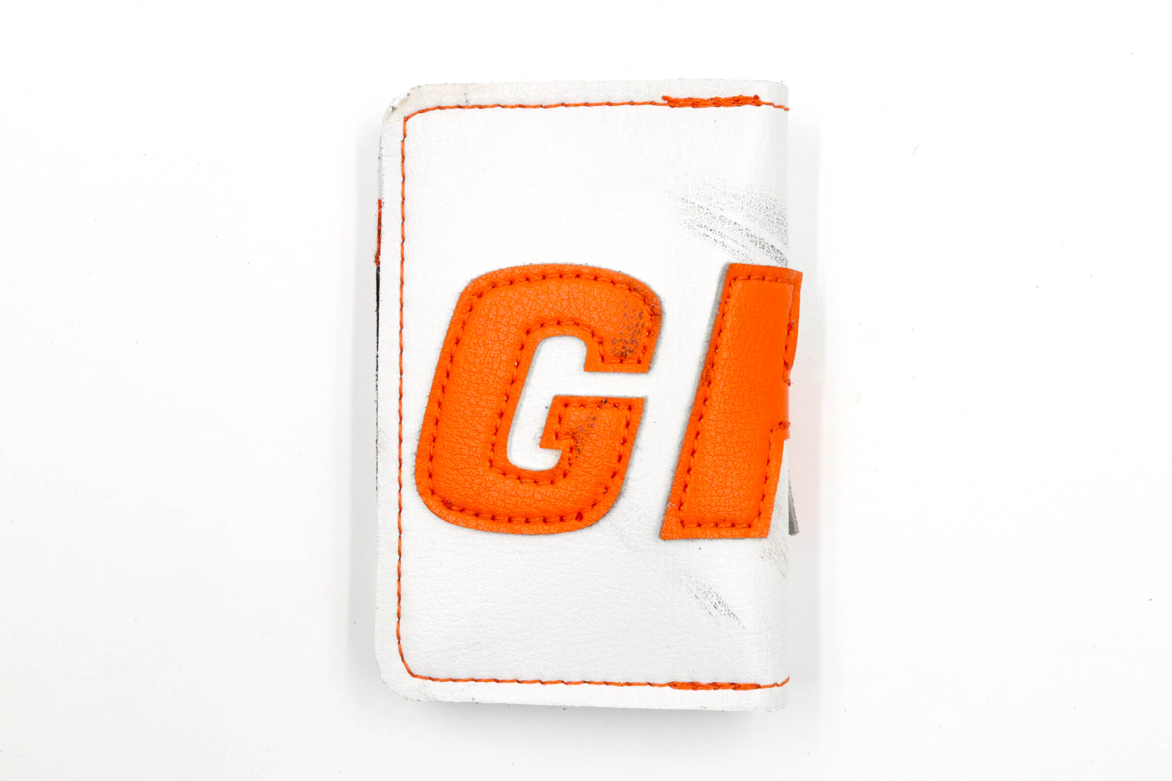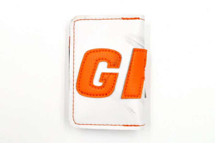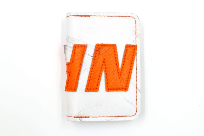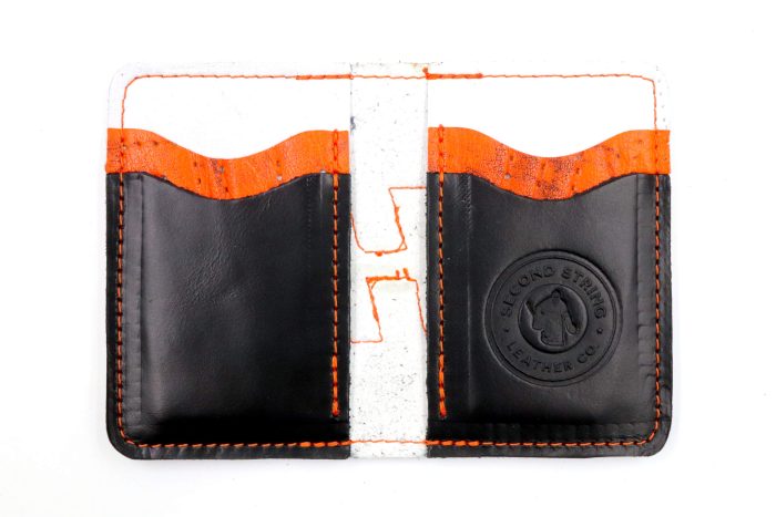 The 6 Slot Wallet is handcrafted from Horween Leather and fused with vintage goalie gear leather. It features six card slots, two of which are hidden