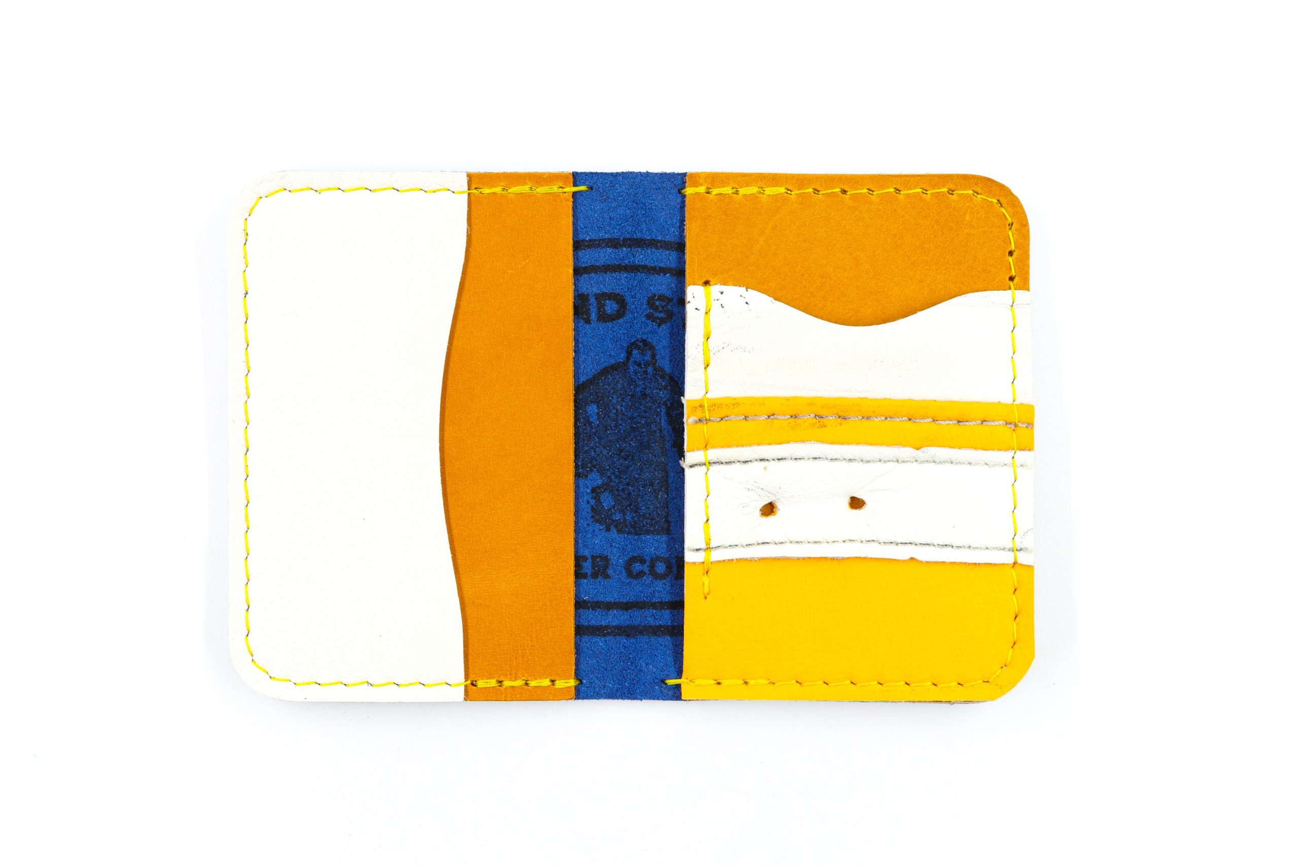 Forged from full-grain, oil-tanned leather and vintage goalie gear leather comes The 4 Slot Wallet. This sleek wallet features three vertical card slo