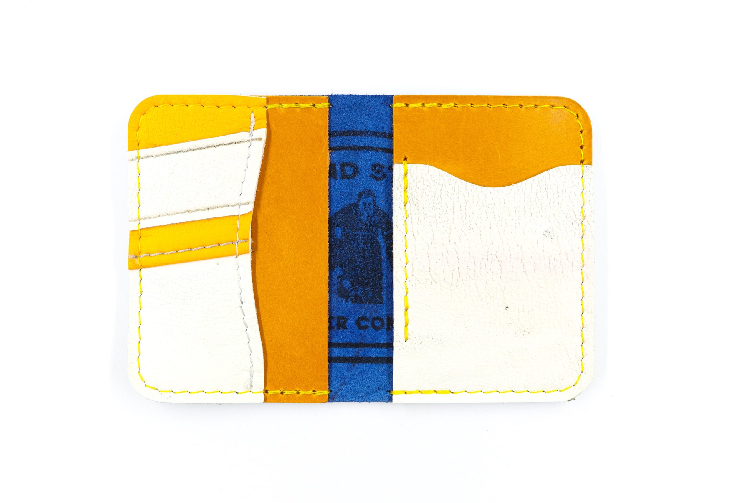 Forged from full-grain, oil-tanned leather and vintage goalie gear leather comes The 4 Slot Wallet. This sleek wallet features three vertical card slo