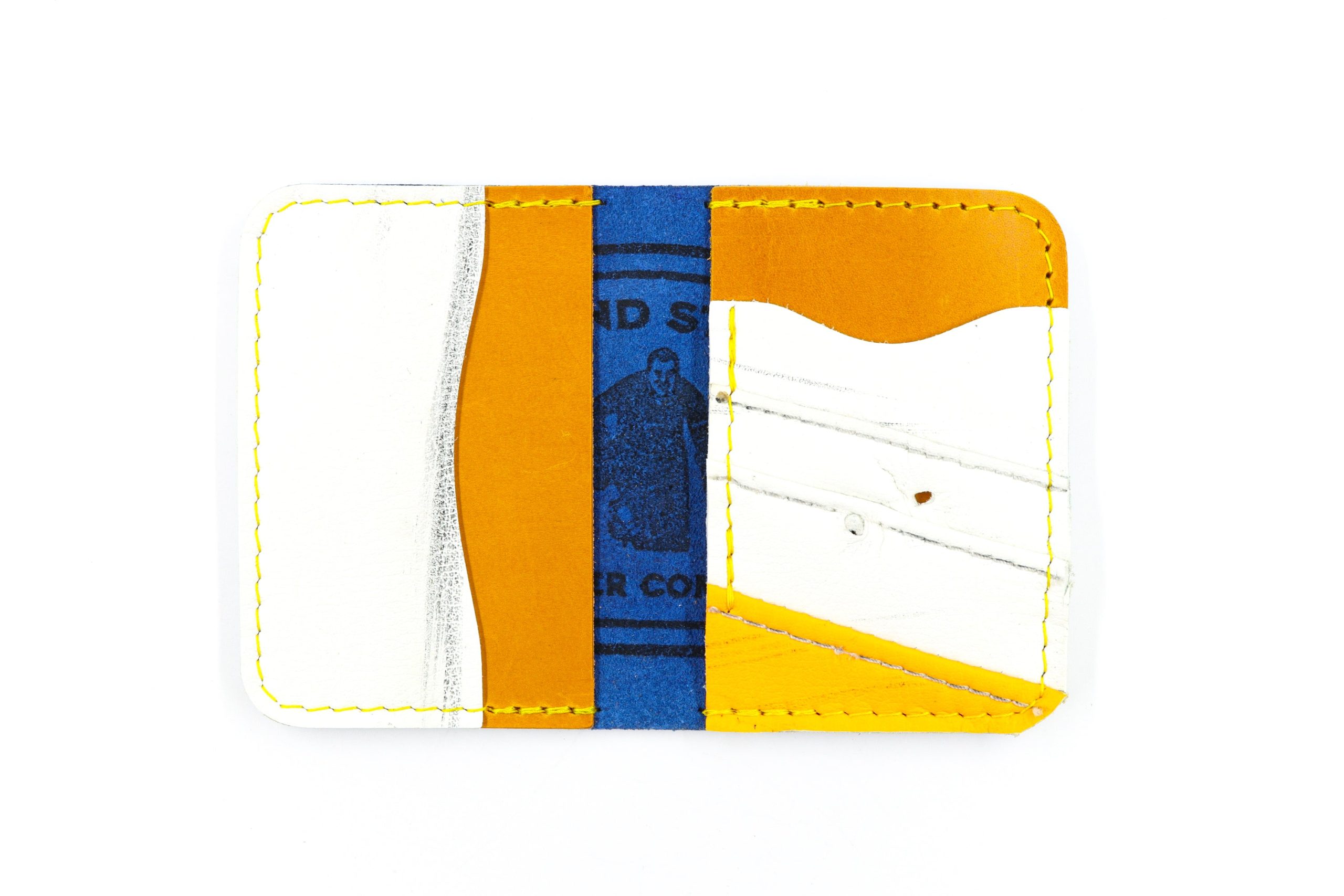 Forged from full-grain, oil-tanned leather and vintage goalie gear leather comes The 4 Slot Wallet. This sleek wallet features three vertical card slo