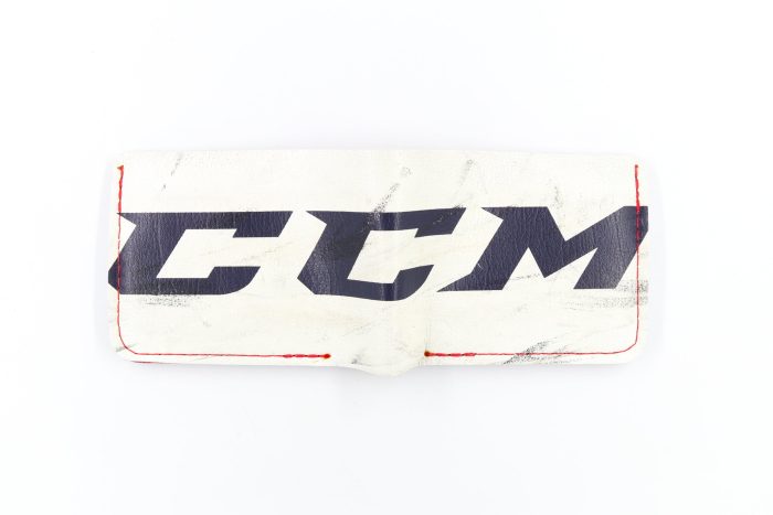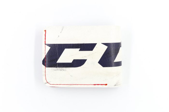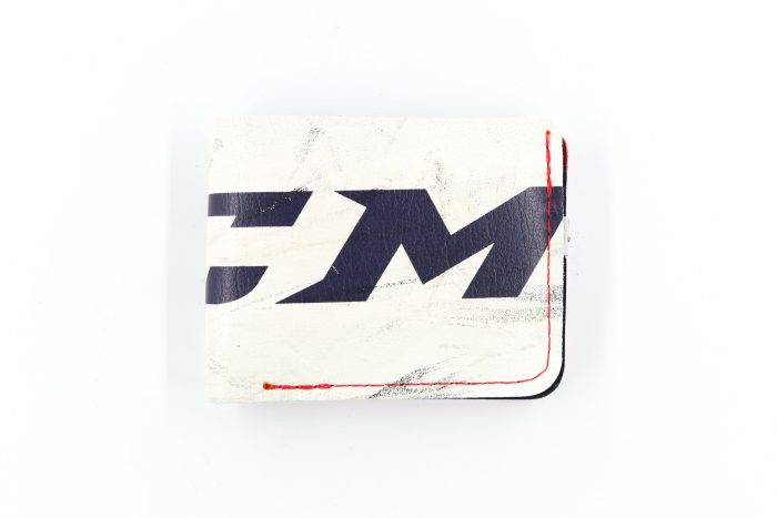 The 6 Slot Bifold Wallet is handcrafted from full-grain, oil-tanned leather and blended with vintage goalie glove leather on the lower left and right