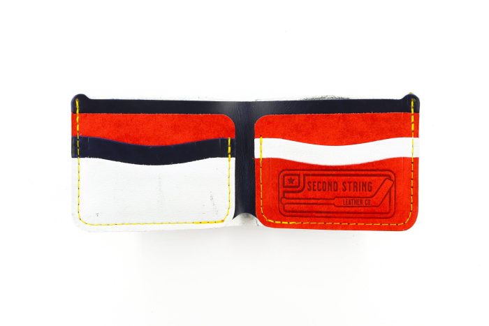 The 6 Slot Bifold Wallet is handcrafted from full-grain, oil-tanned leather and blended with vintage goalie glove leather on the lower left and right card pockets. The Bifold features 6 card slots and a bill compartment providing enough space to hold all of your daily necessities. Carry an amazing piece of the games passed with this sleek and functional leather wallet.To see this product in use, click here: https://secondstringleather.com/pages/product-usage