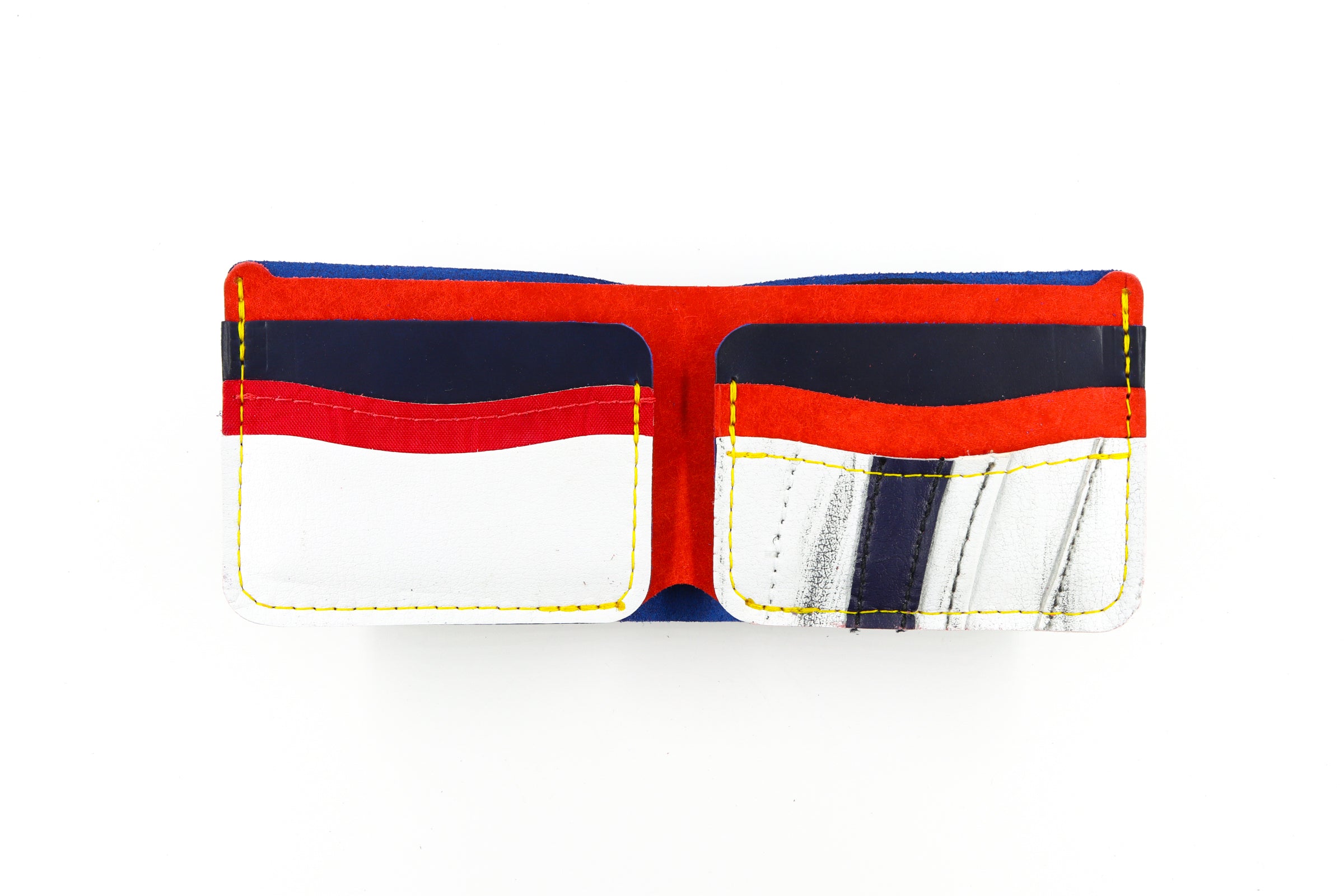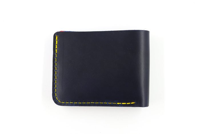 The 6 Slot Bifold Wallet is handcrafted from full-grain, oil-tanned leather and blended with vintage goalie glove leather on the lower left and right