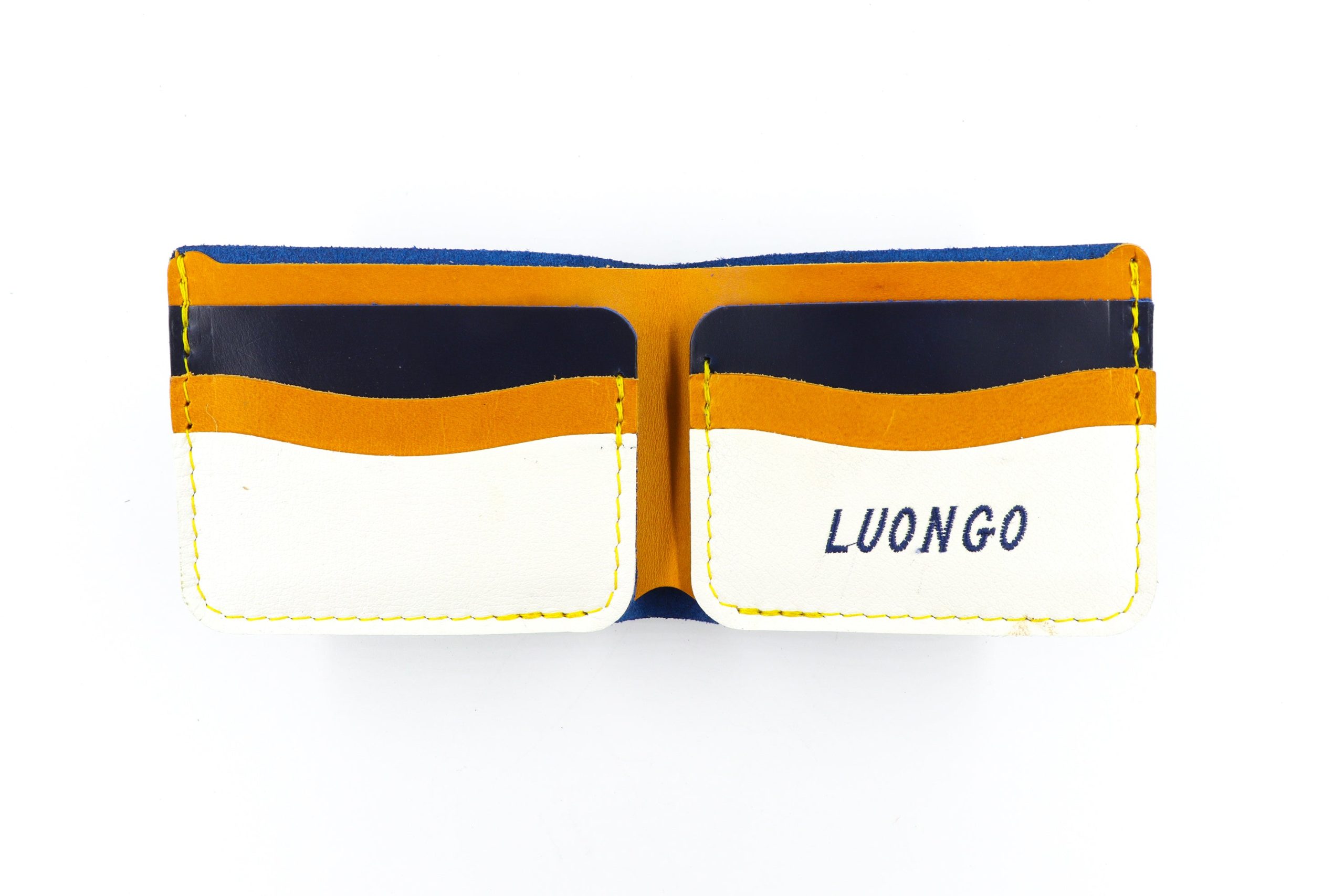 The 6 Slot Bifold Wallet is handcrafted from full-grain, oil-tanned leather and blended with vintage goalie gear leather on the lower left and right c