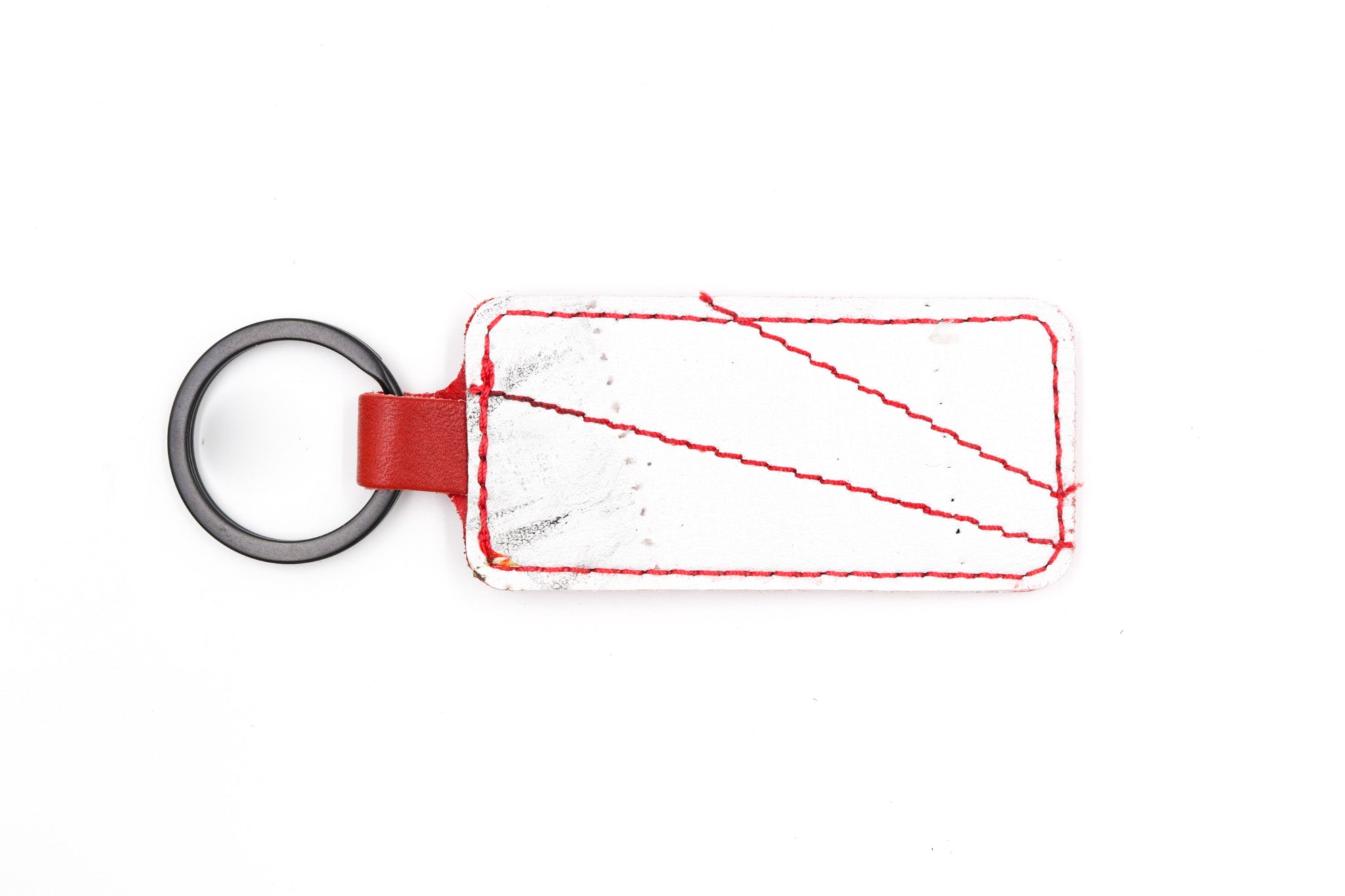 The SSLC Keychain is handcrafted from full-grain, oil-tanned leather and paired with a piece of vintage goalie gear leather. No two keychains are exac
