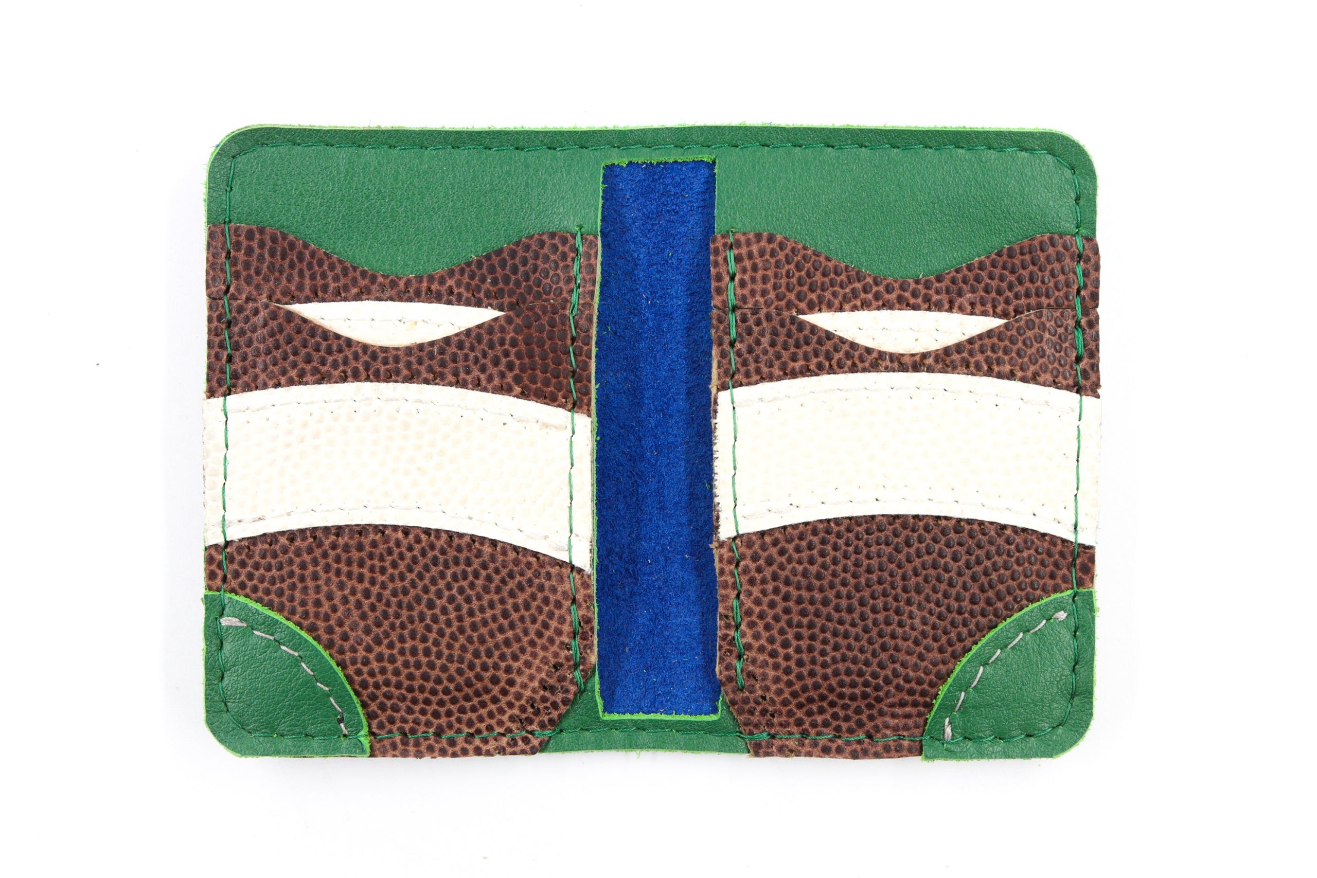 Handcrafted from full-grain, oil-tanned leather and fused with authentic football leather, The 6 Slot Wallet is built for those who value legacy and c