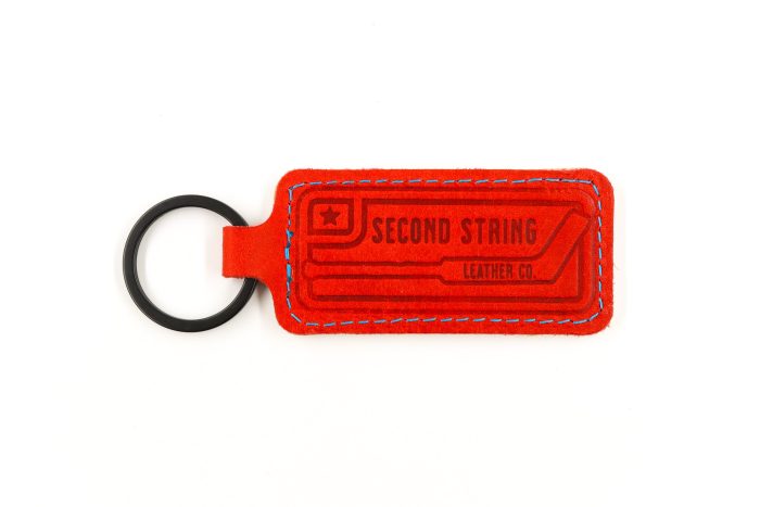 The SSLC Keychain is handcrafted from full-grain, oil-tanned leather and paired with a piece of vintage goalie gear leather. No two keychains are exac