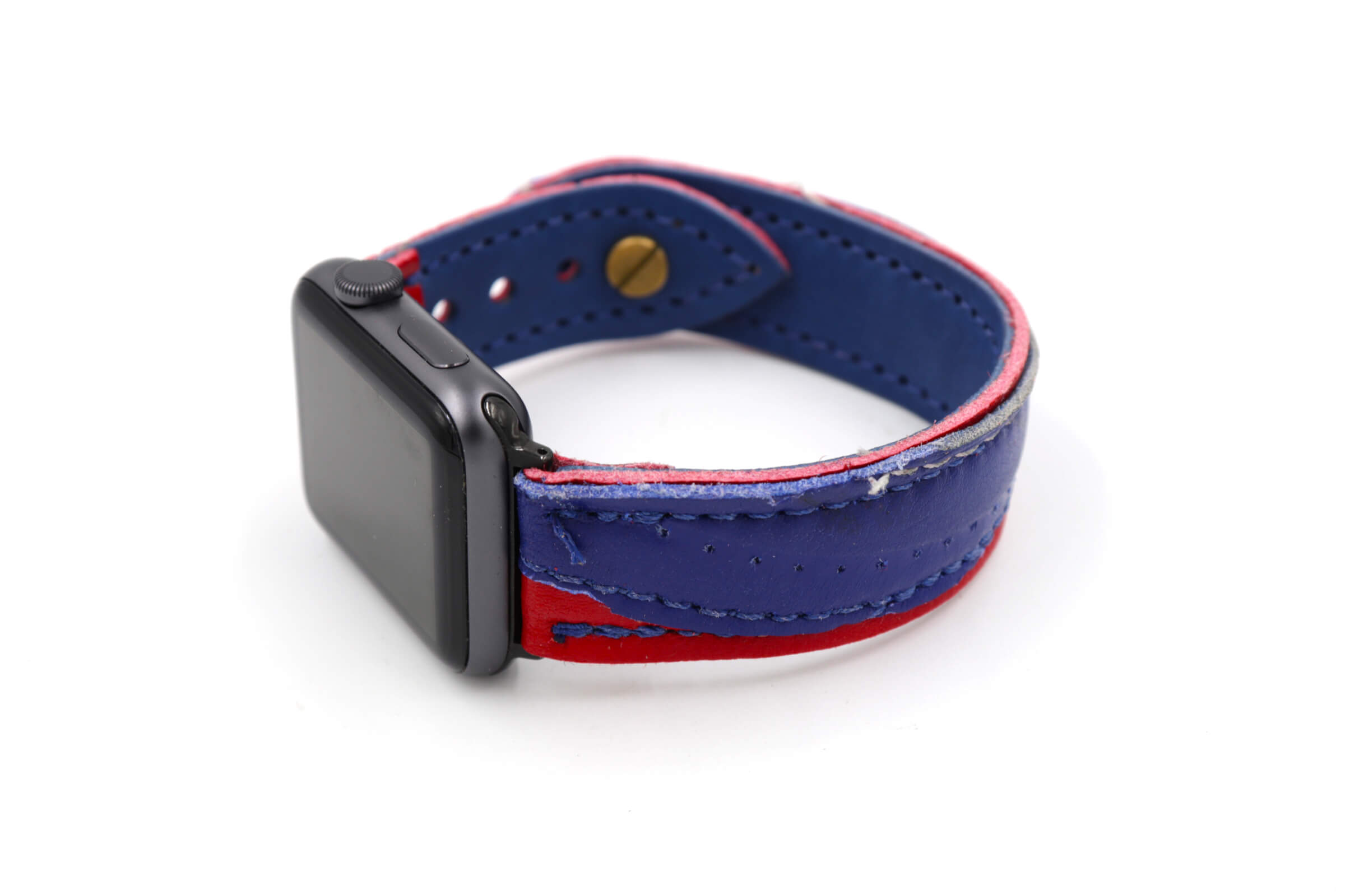 Handcrafted from vintage goalie gear leather, and backed with soft, grey suede creates a comfortable fit around your wrist at all times. Each watch band has a one of a kind look complimenting the construction and vintage feel perfectly. No two bands are the same, making for truly unique timeless pieces.