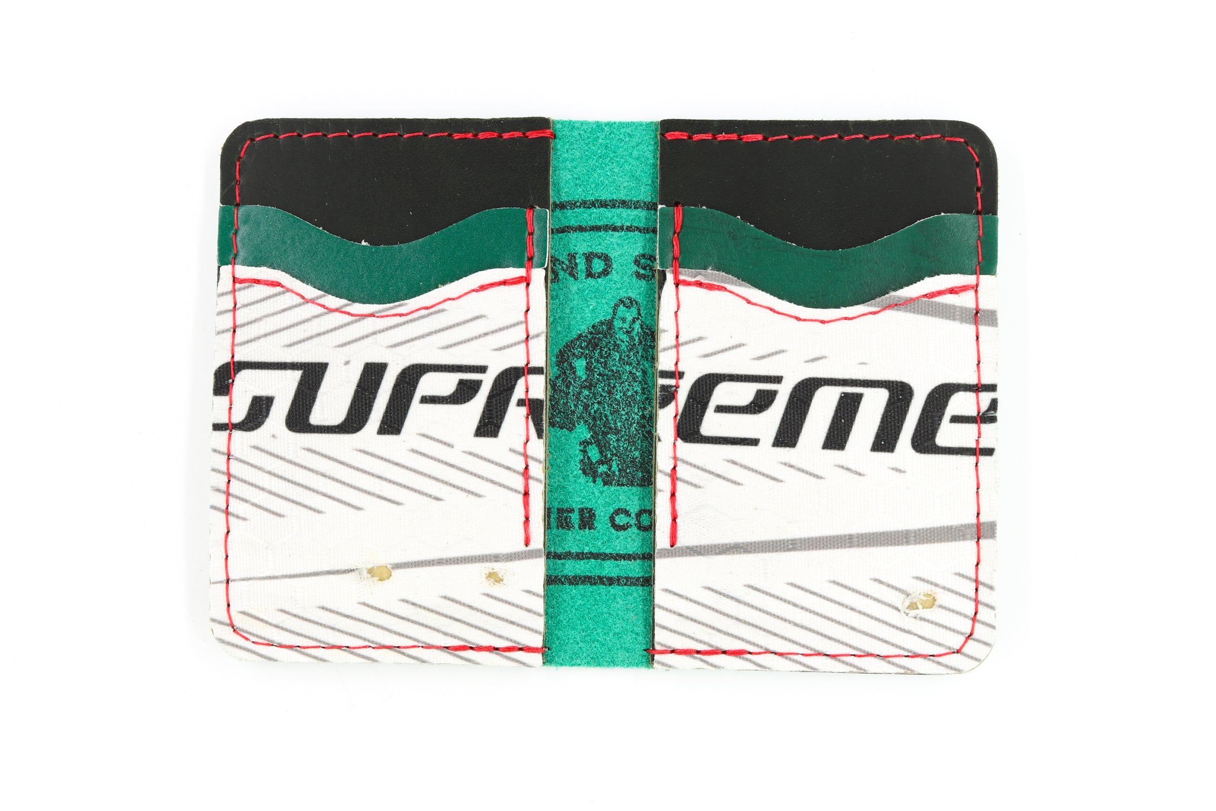 The 6 Slot Wallet is handcrafted from full-grain, oil-tanned leather and fused with vintage goalie gear leather. It features six card slots, two of wh