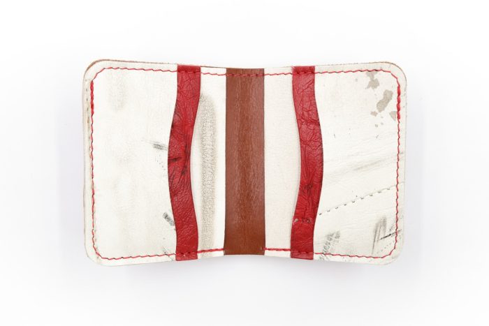 The 6 Slot Square Wallet is handcrafted from full-grain, oil-tanned leather and blended with vintage goalie gear leather. It features six card slots a