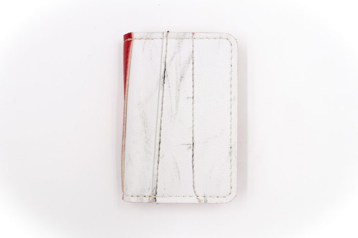 The 6 Slot Wallet is handcrafted from full-grain, oil-tanned leather and fused with vintage goalie gear leather. It features six card slots, two of wh
