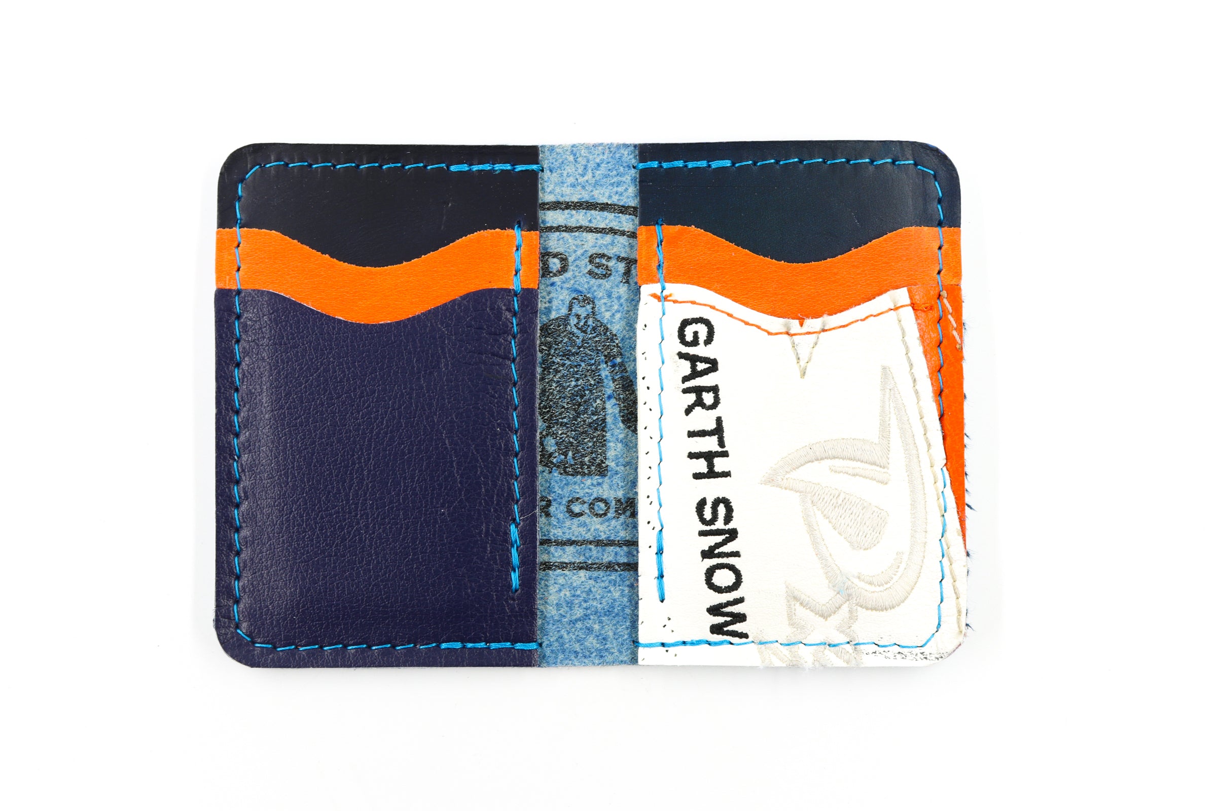 The 6 Slot Wallet is handcrafted from full-grain, oil-tanned leather and fused with vintage goalie gear leather. It features six card slots, two of wh
