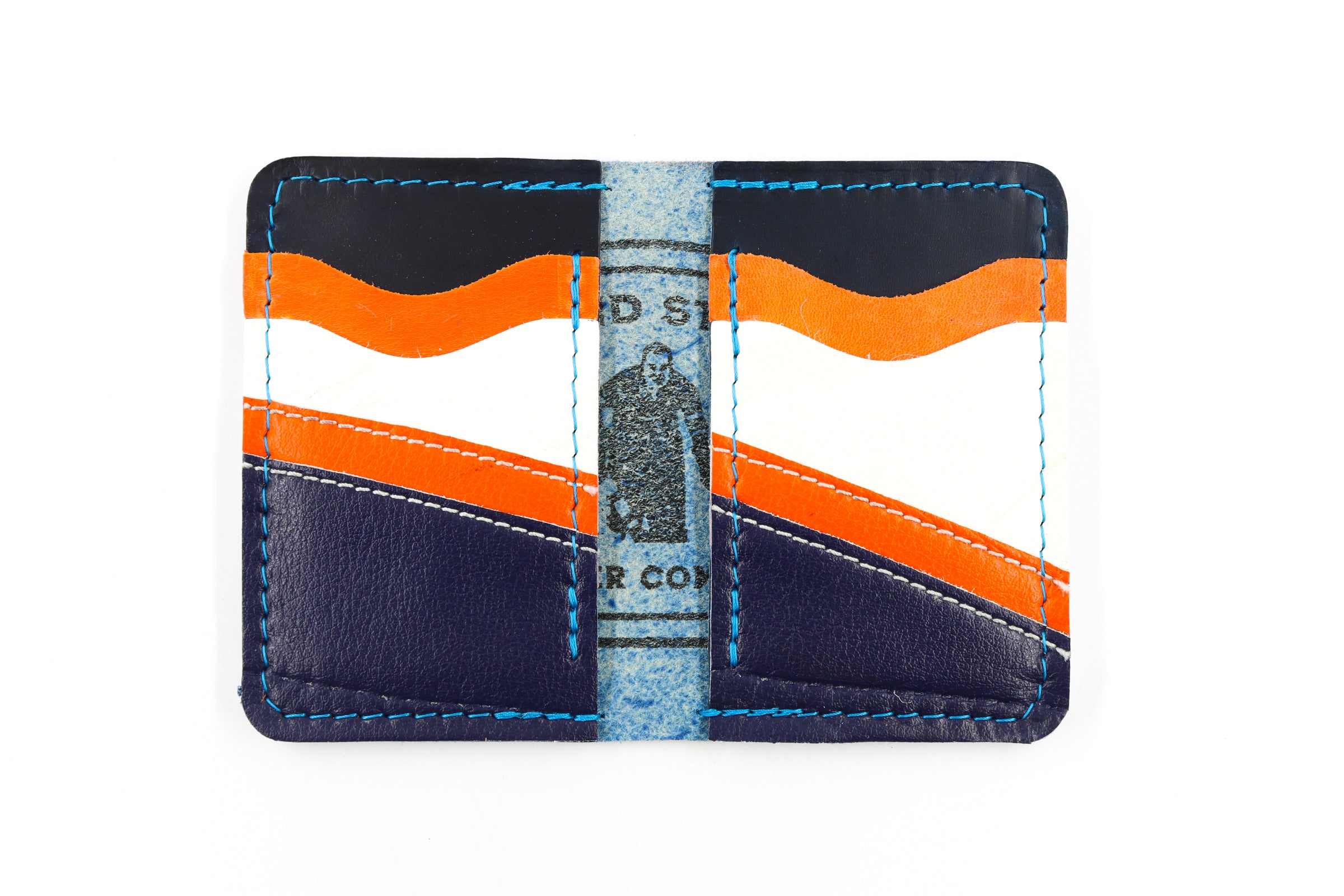 The 6 Slot Wallet is handcrafted from full-grain, oil-tanned leather and fused with vintage goalie gear leather. It features six card slots, two of wh