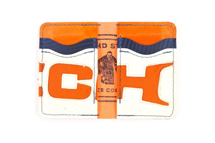 The 6 Slot Wallet is handcrafted from full-grain, oil-tanned leather and fused with vintage goalie gear leather. It features six card slots, two of wh