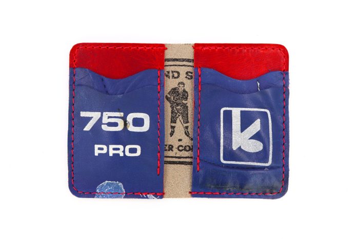 The 6 Slot Wallet is handcrafted from full-grain, oil-tanned leather and fused with vintage player gear leather. It features six card slots, two of wh