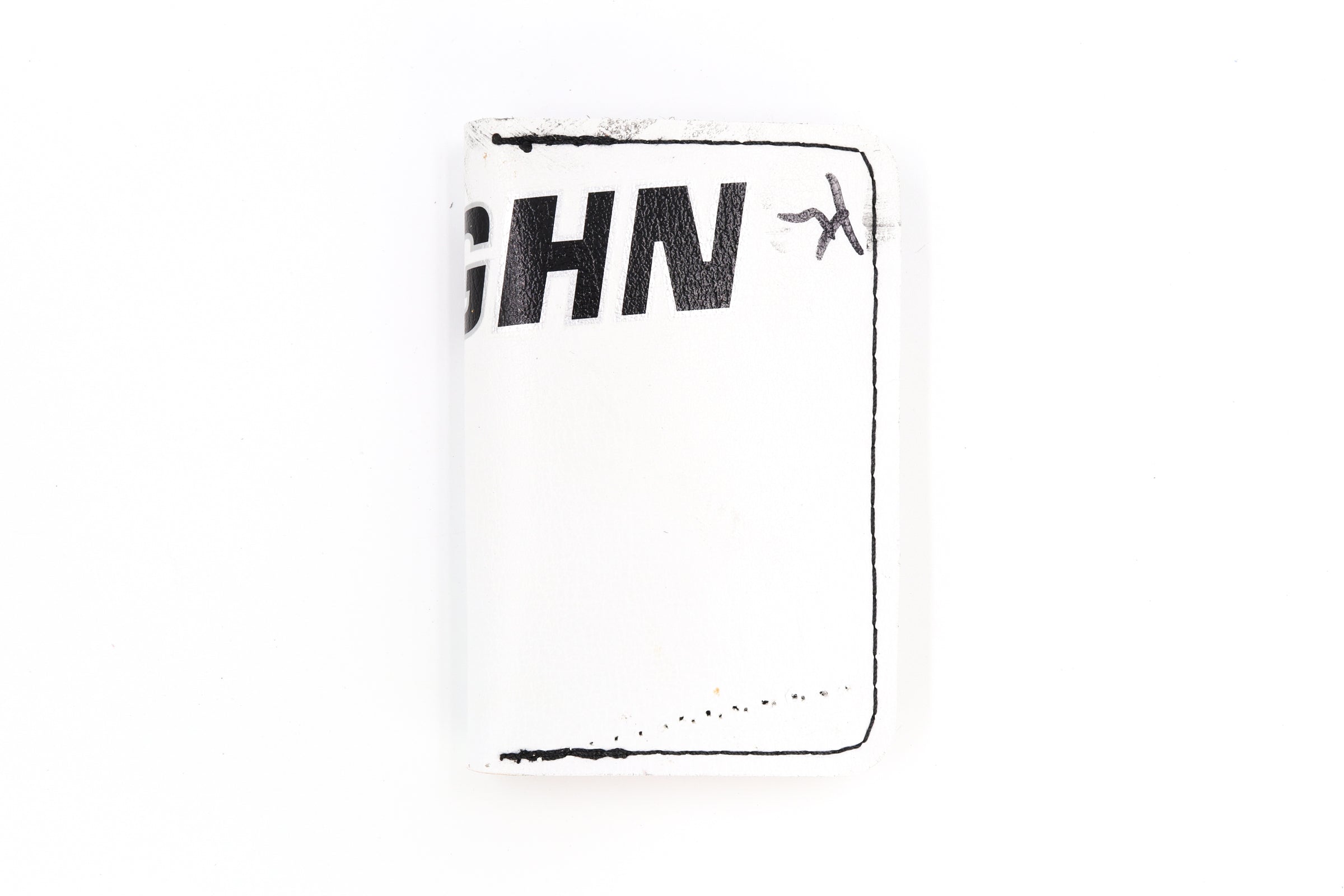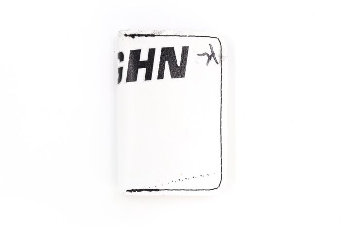 The 6 Slot Wallet is handcrafted from full-grain, oil-tanned leather and fused with vintage goalie gear leather. It features six card slots, two of wh