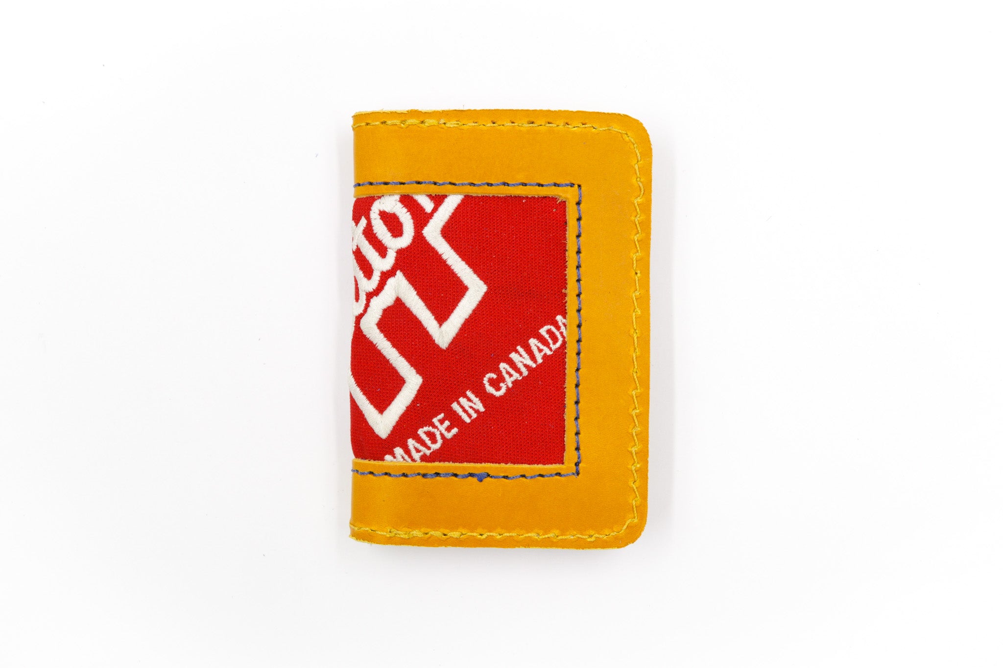 The 6 Slot Wallet is handcrafted from full-grain, oil-tanned leather and fused with vintage goalie gear leather. It features six card slots, two of wh