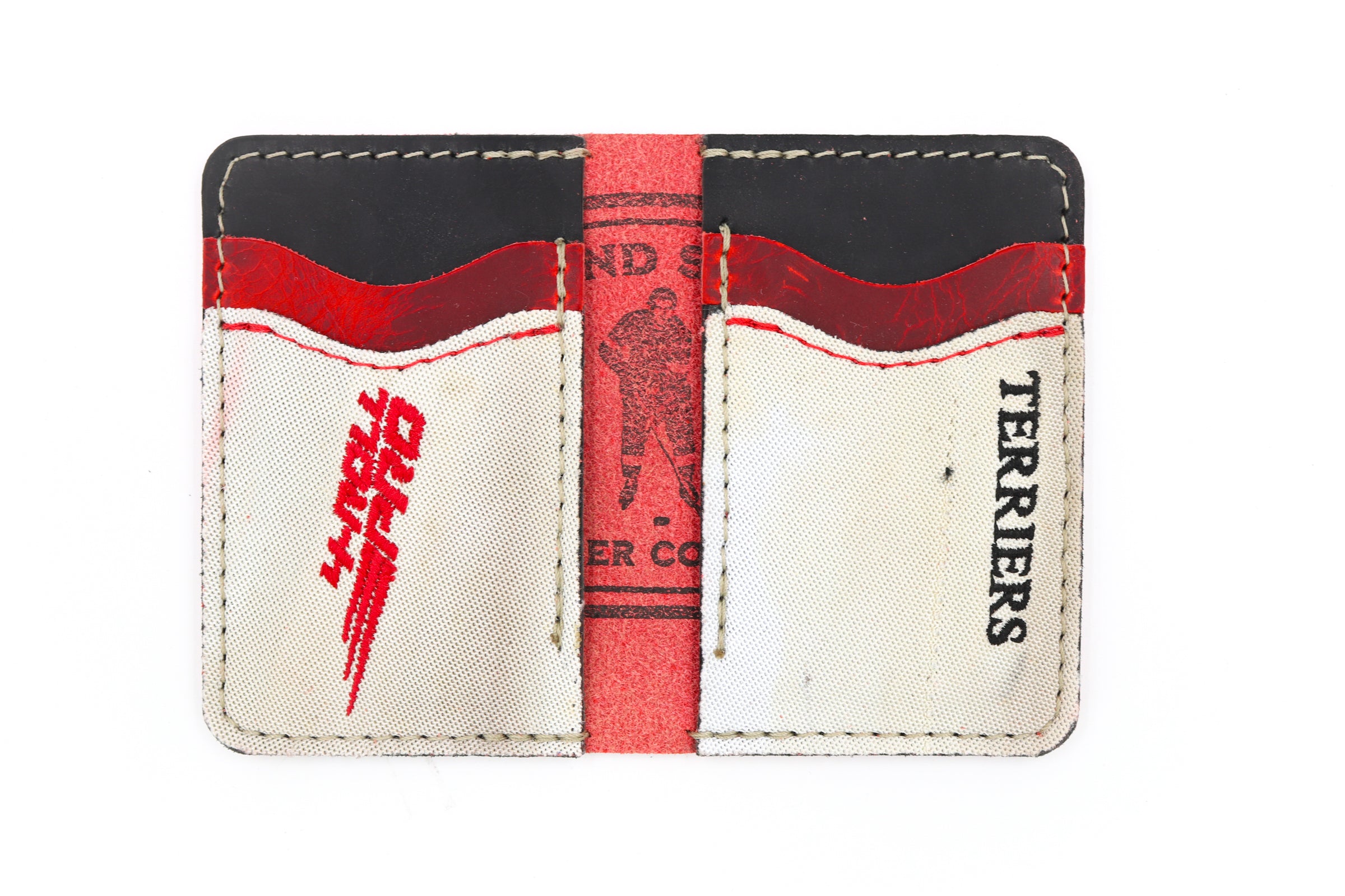The 6 Slot Wallet is handcrafted from full-grain, oil-tanned leather and fused with vintage player gear leather. It features six card slots, two of wh