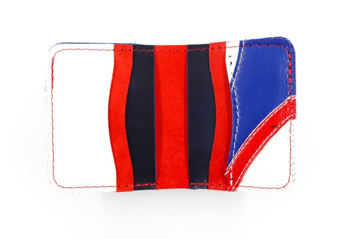 The 6 Slot Square Wallet is handcrafted from full-grain, oil-tanned leather and blended with vintage goalie gear leather. It features six card slots a