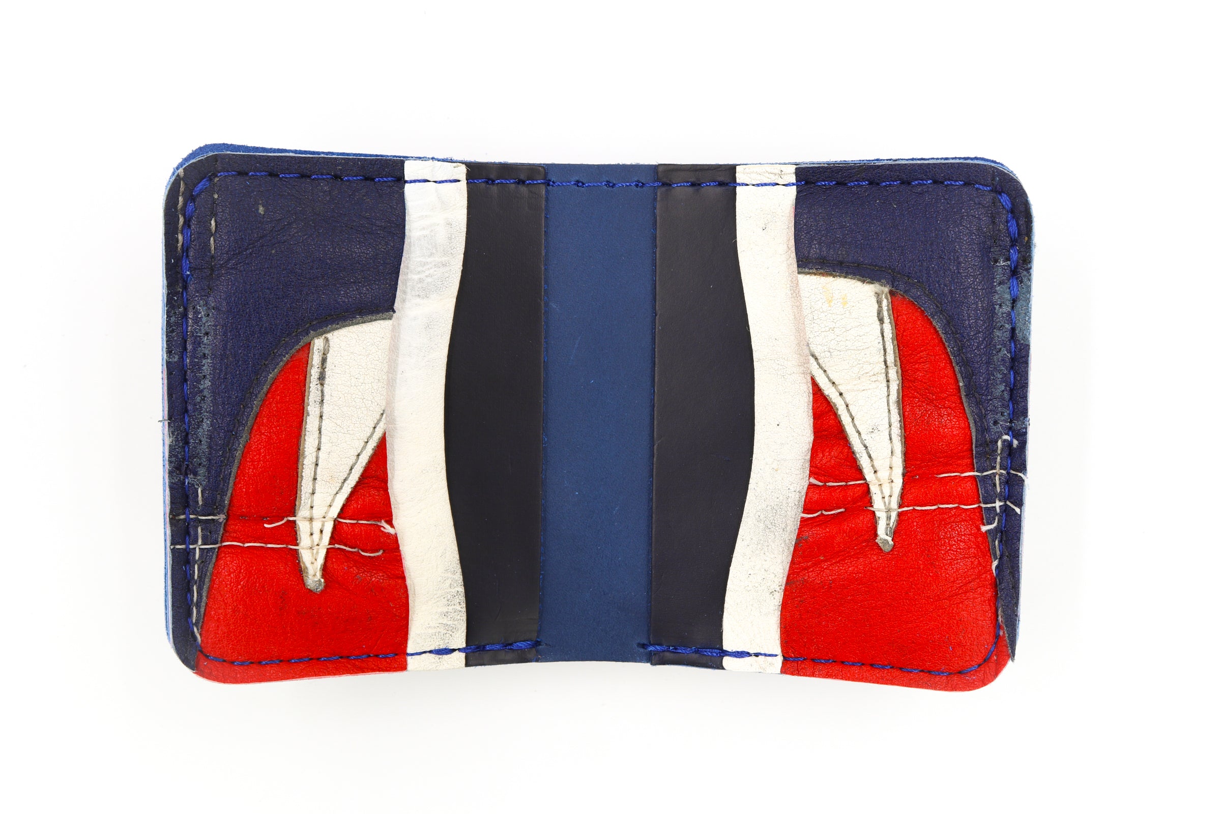 The 6 Slot Square Wallet is handcrafted from full-grain, oil-tanned leather and blended with vintage goalie gear leather. It features six card slots a
