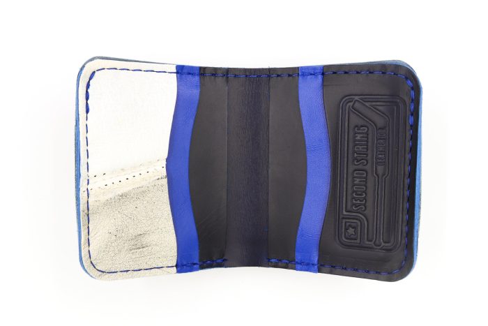 The 6 Slot Square Wallet is handcrafted from full-grain, oil-tanned leather and blended with vintage goalie gear leather. It features six card slots and a top bill fold compartment for easy bill storage. Carry on the heritage of the games passed with this sleek and functional leather wallet.