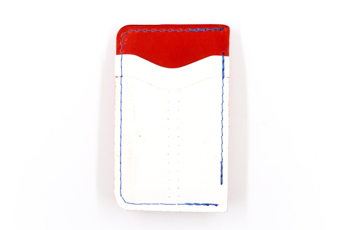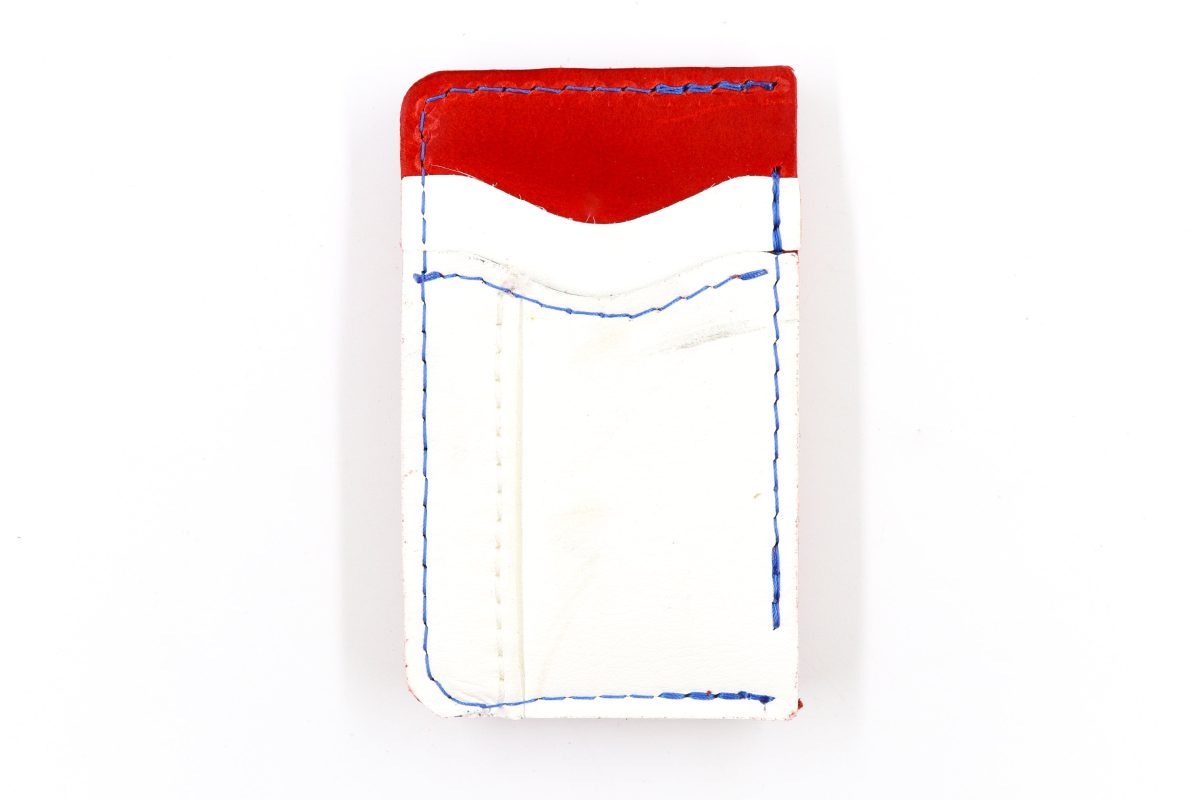 The 6 Slot Wallet is handcrafted from full-grain, oil-tanned leather and fused with vintage player gear leather. It features six card slots, two of wh