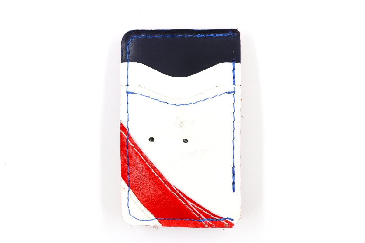 The 6 Slot Wallet is handcrafted from football gear components and material. It features six card slots, two of which are hidden providing enough card