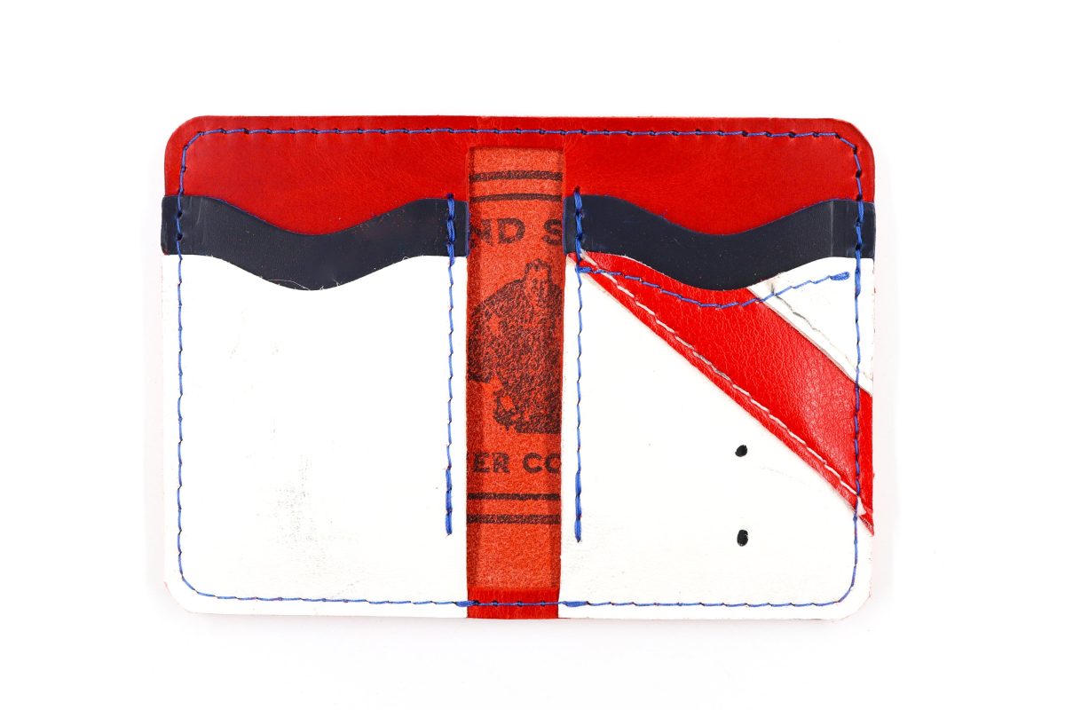 The 6 Slot Wallet is handcrafted from full-grain, oil-tanned leather and fused with vintage goalie gear leather. It features six card slots, two of wh