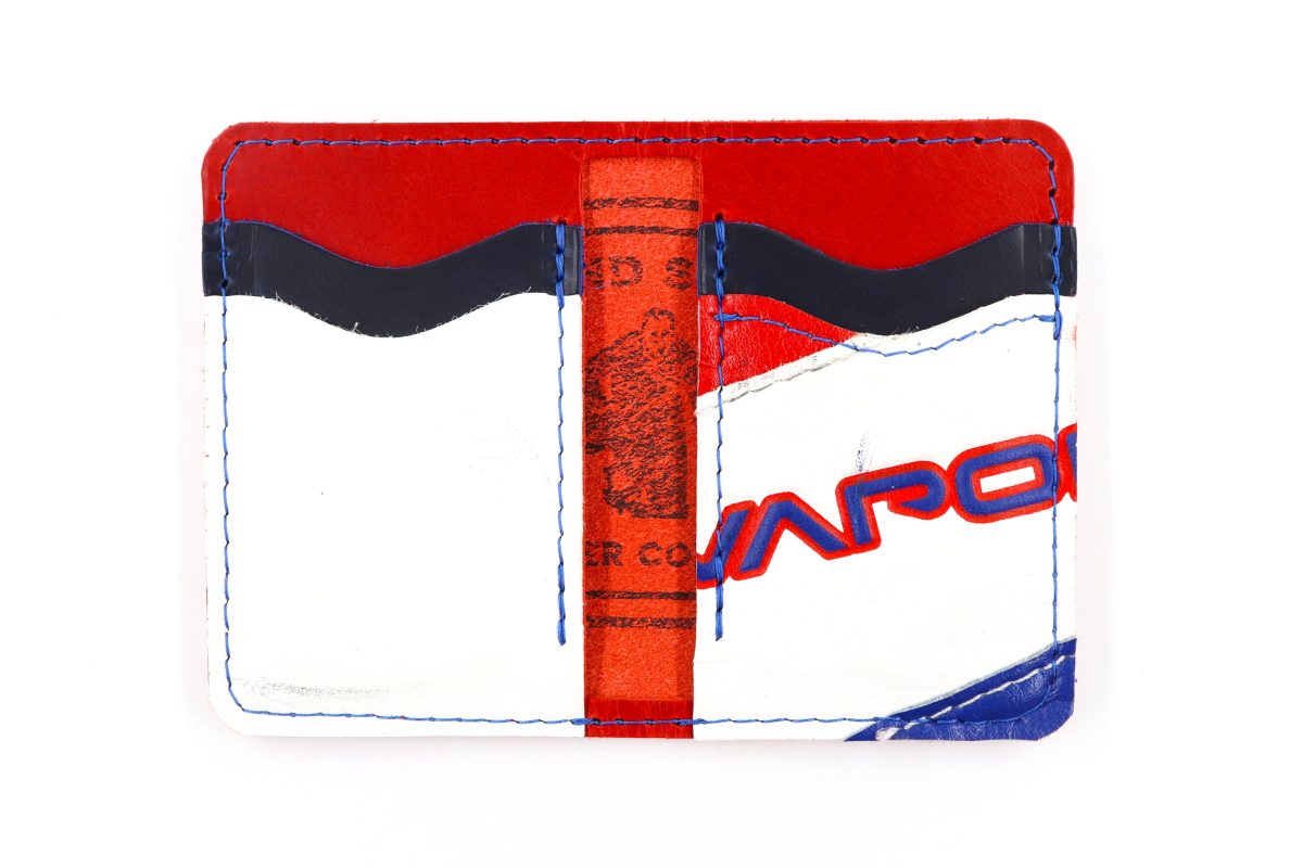 The 6 Slot Wallet is handcrafted from and fused with vintage goalie gear leather. It features six card slots, two of which are hidden providing enough