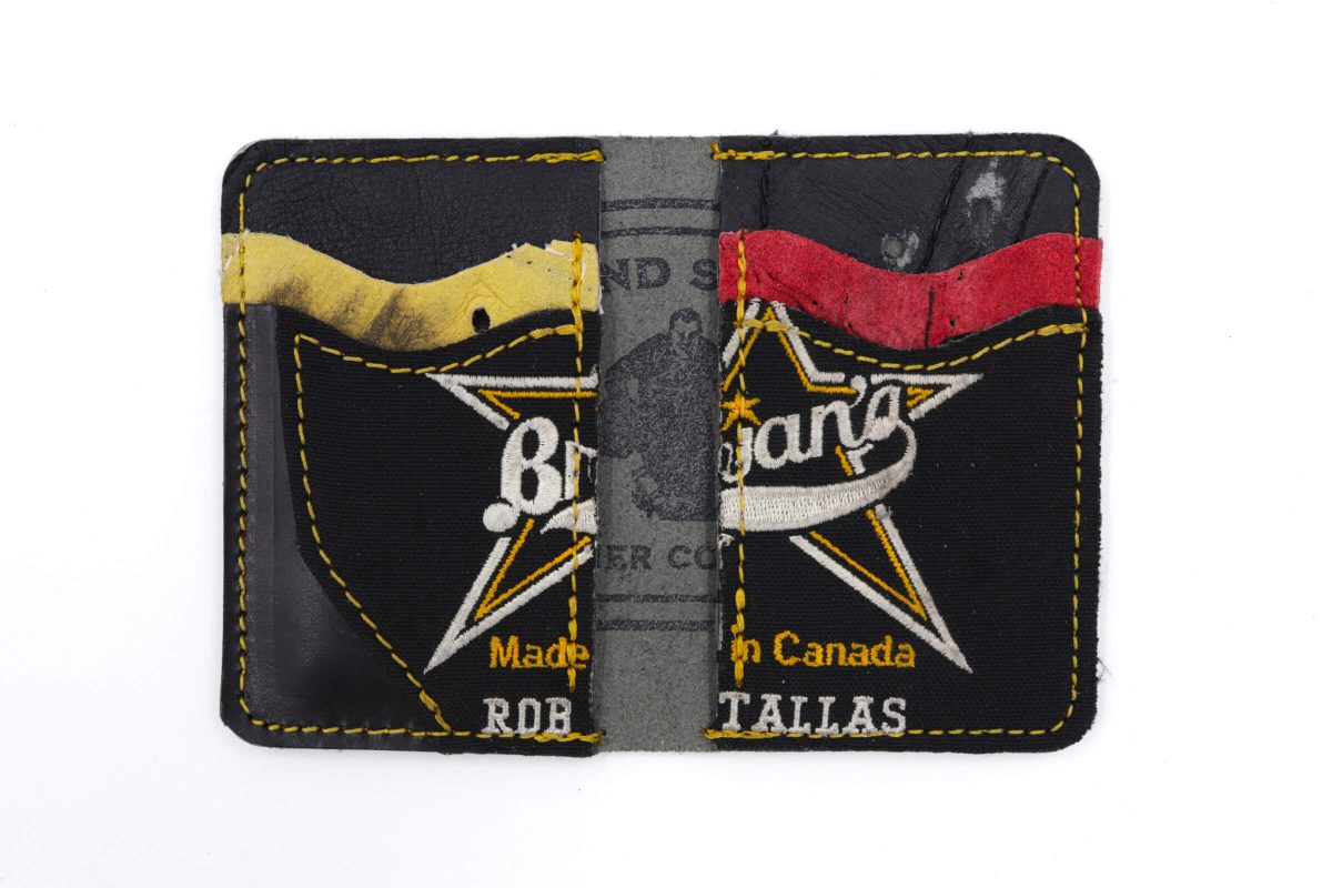 The 6 Slot Wallet is handcrafted from full-grain, oil-tanned leather and fused with vintage goalie gear leather. It features six card slots, two of wh