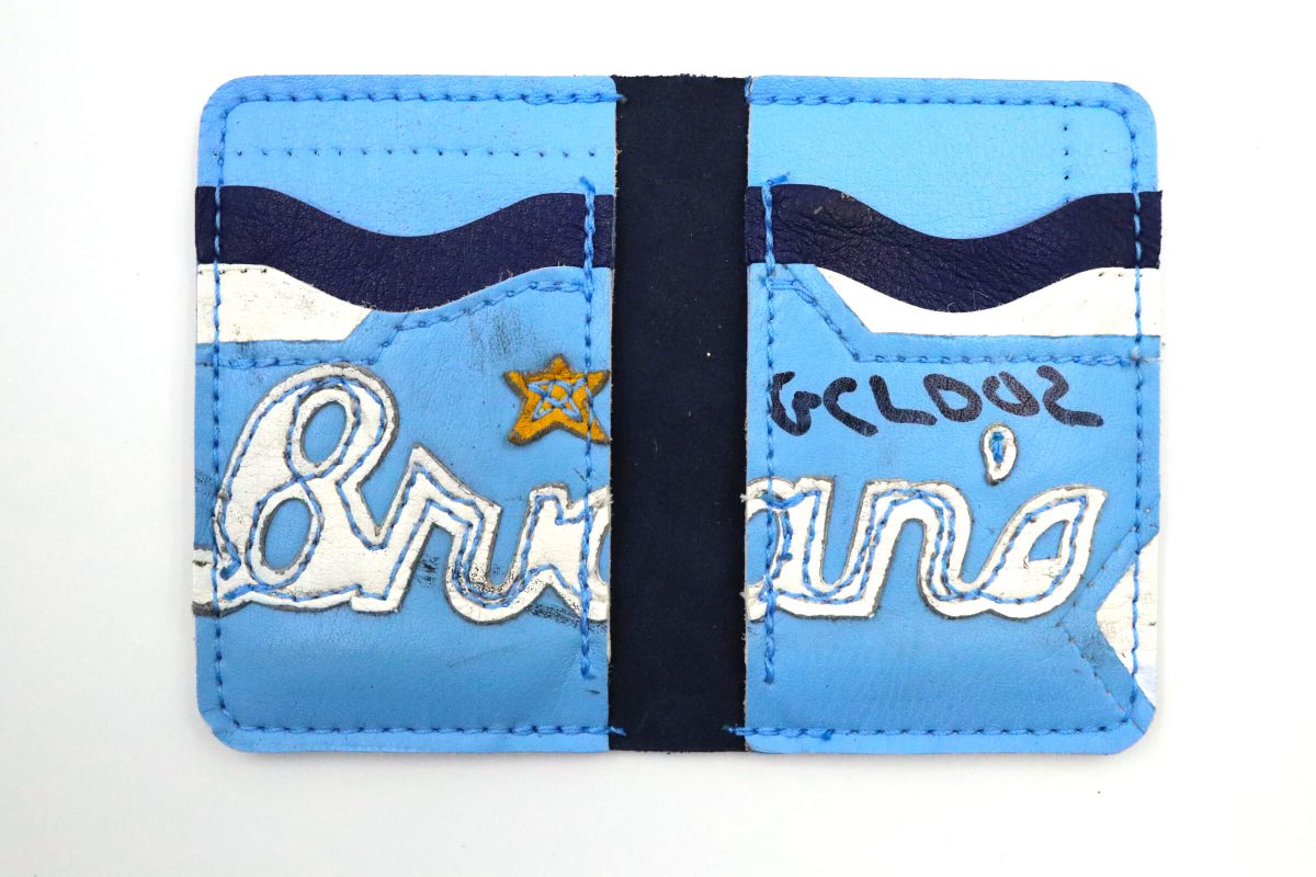 The Bi-fold Wallet is handcrafted from full-grain, oil-tanned leather and blended with pro goalie gear leather. The Bi-fold features two card slots an