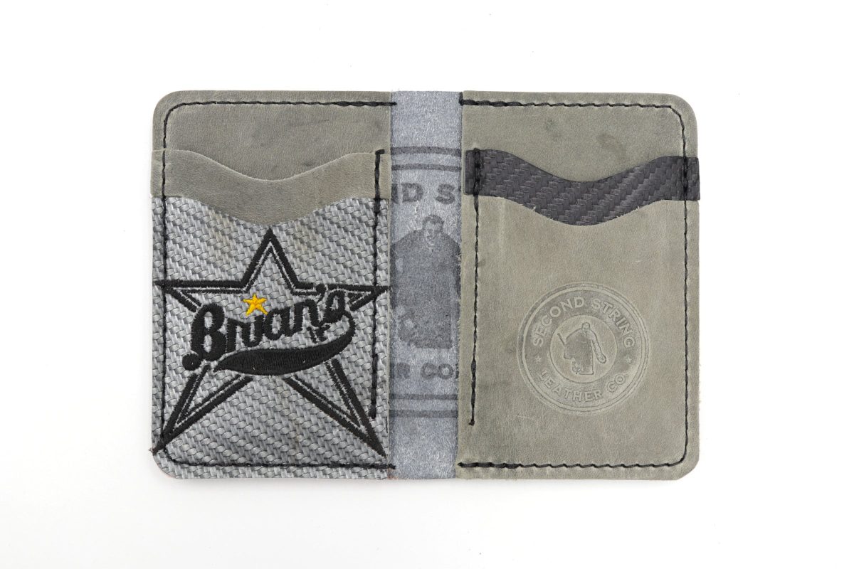 The 6 Slot Bifold Wallet is handcrafted from Horween Leather and blended with vintage goalie glove leather on the lower left and right card pockets. T
