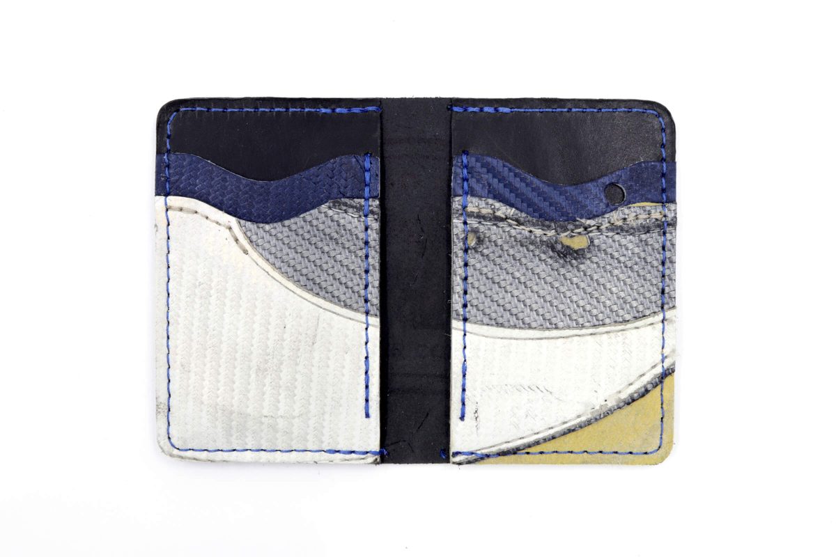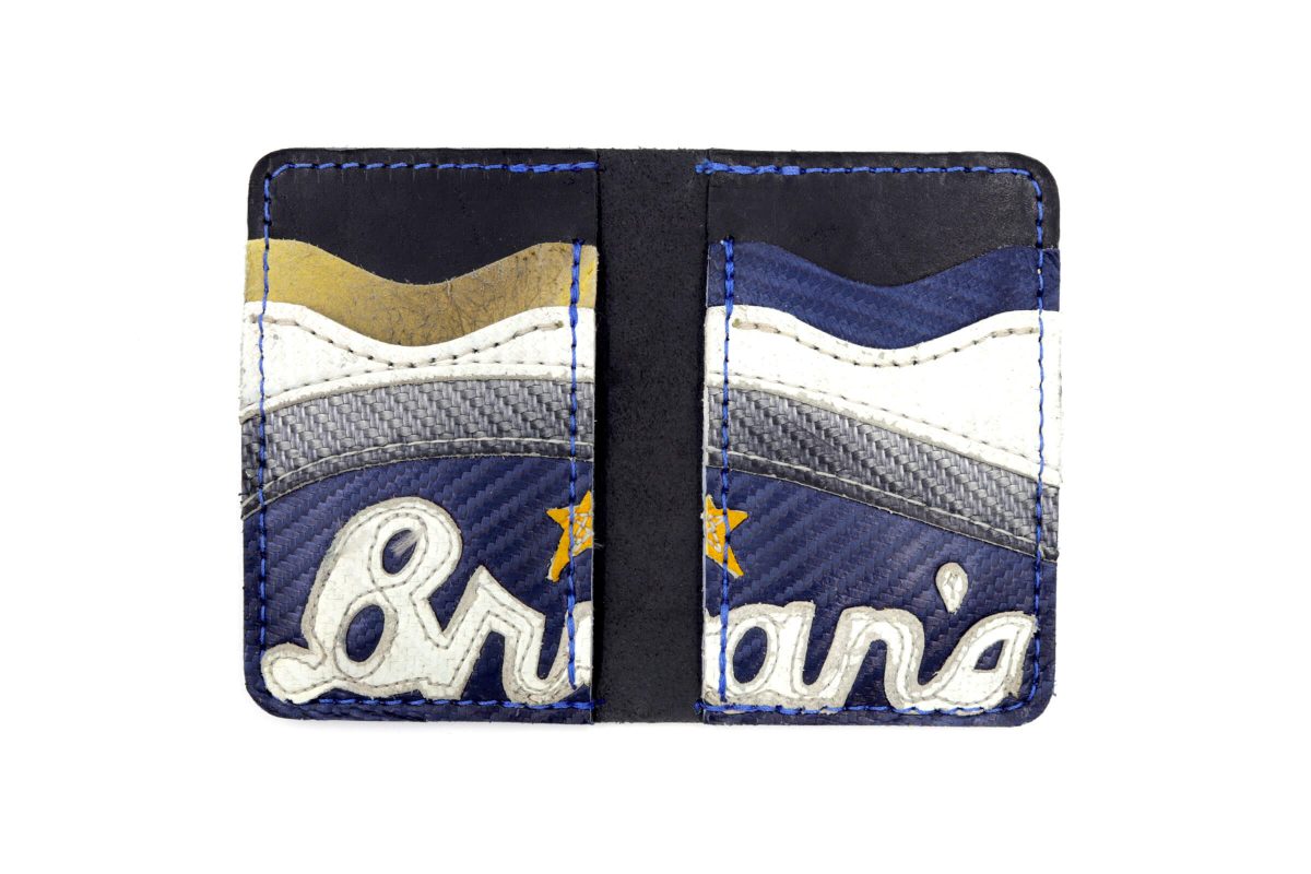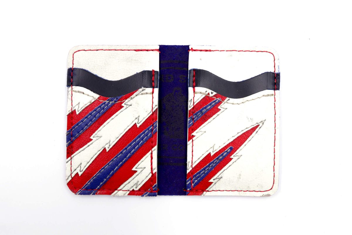 The 6 Slot Wallet is handcrafted from full-grain, oil-tanned leather and fused with vintage goalie gear leather. It features six card slots, two of wh