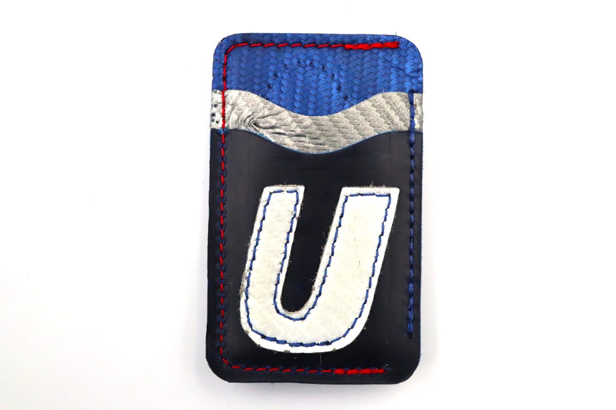 The 6 Slot Wallet is handcrafted from full-grain, oil-tanned leather and fused with vintage goalie gear leather. It features six card slots, two of wh